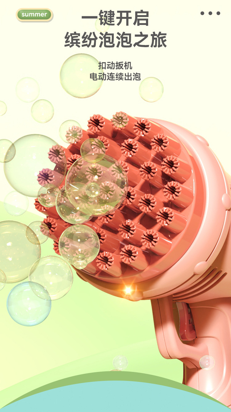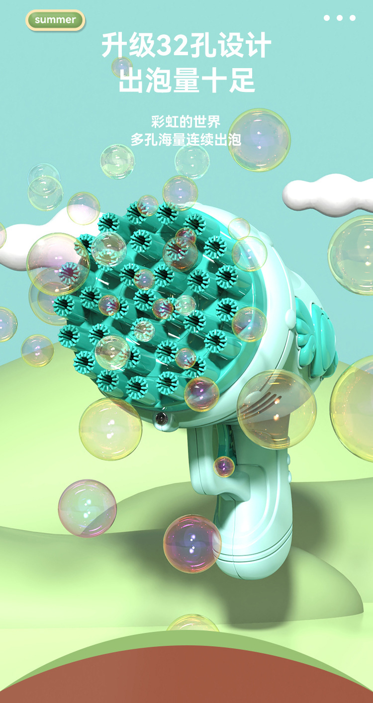 Tiktok 인기있는 32 홀 천사 거품 기계 전기 개 틀린 거품 총 어린이 장난감 마구간 도매