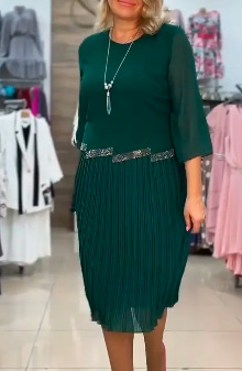 국경을 넘나 드는 기질 원피스 여성의 2024 봄과 여름 새로운 단색 둥근 목 우아한 슬리밍 주름 치마스토어 가기