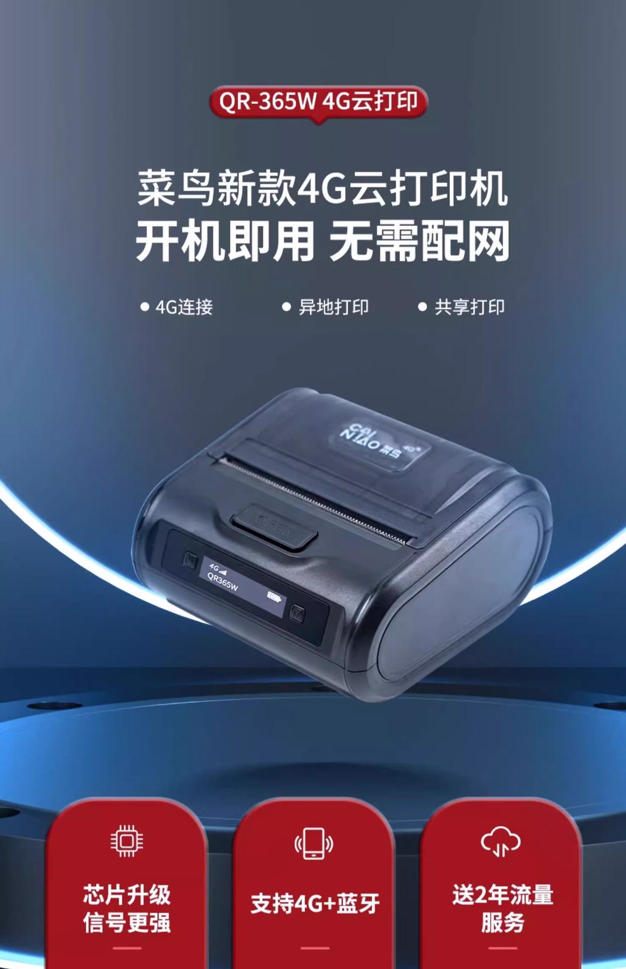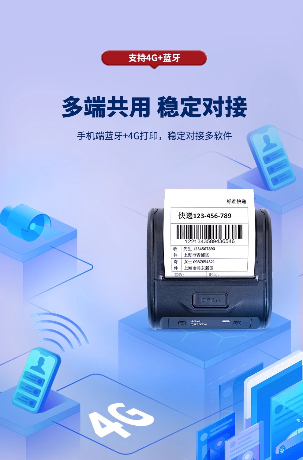 Qirui QR365W 익스프레스 100 Cainiao 4G 클라우드 프린터 휴대용 얼굴 단일 독립형 전자 상거래 바코드 프린터스토어 가기