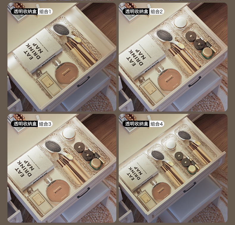 가벼운 고급 서랍 칸막이 보관 상자 책상 캐비닛 내장 문구 펜 직사각형 플라스틱 책상 정리 상자