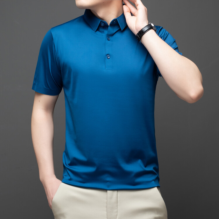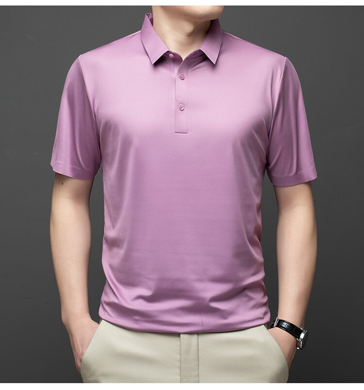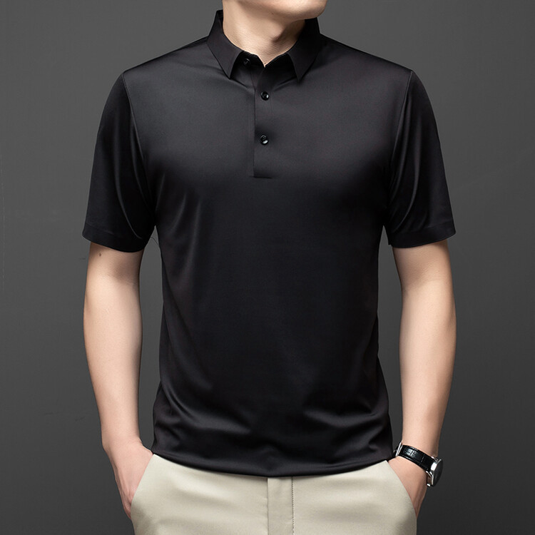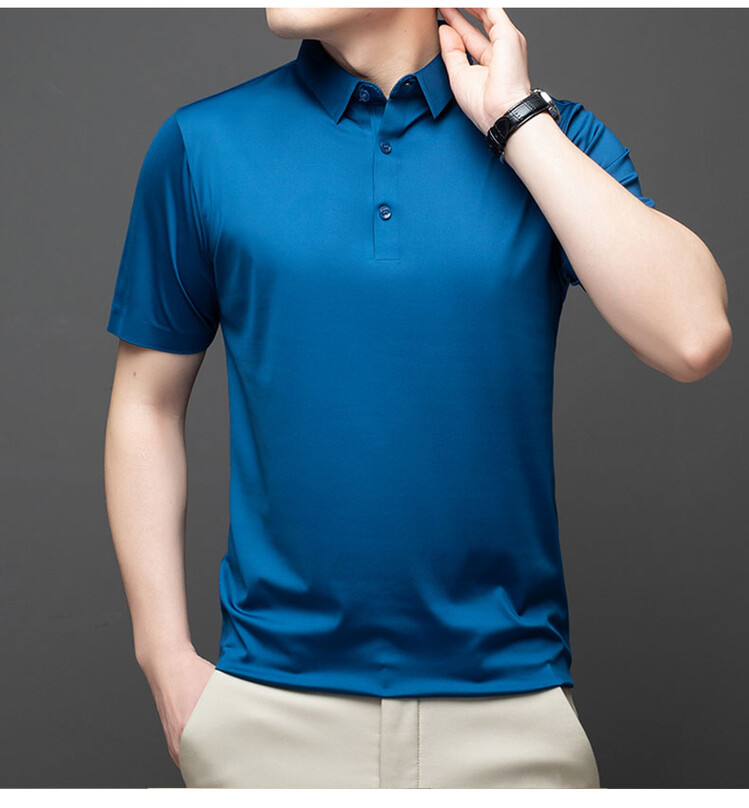 젊고 중년 반팔 티셔츠 남성용 단색 비즈니스 폴로 셔츠 비 다림질 접착제 아이스 실크 원활한 아이스 실크 옷깃 티셔츠 남성스토어 가기