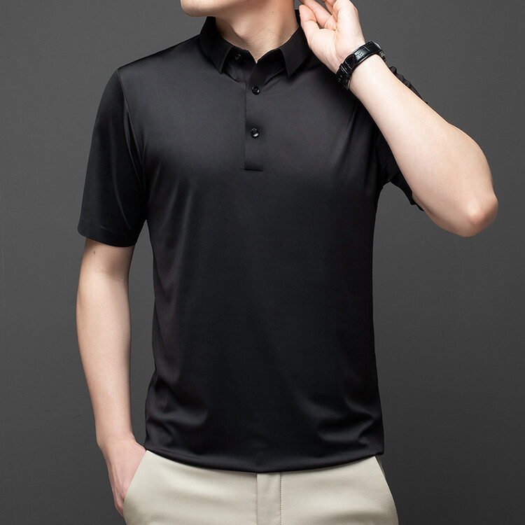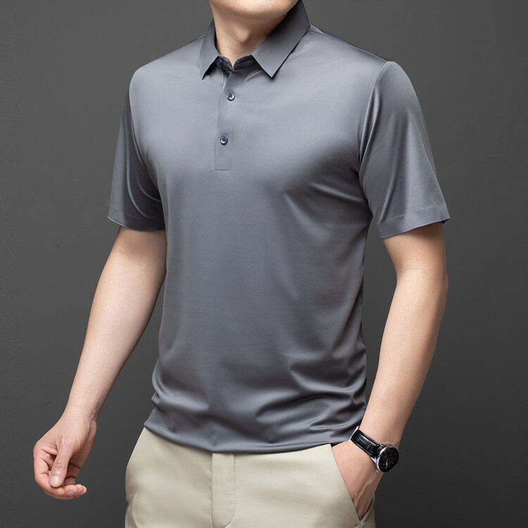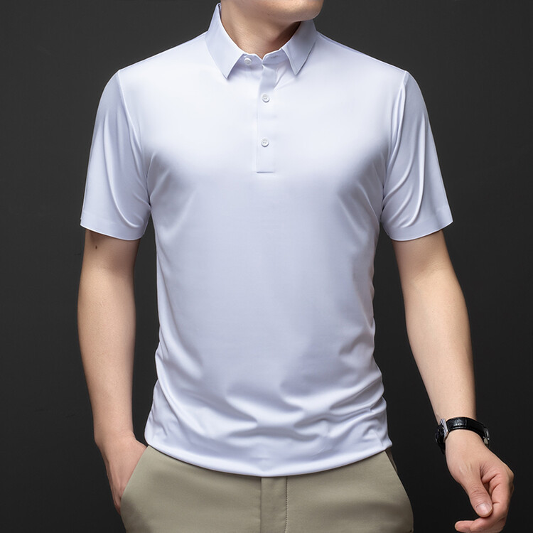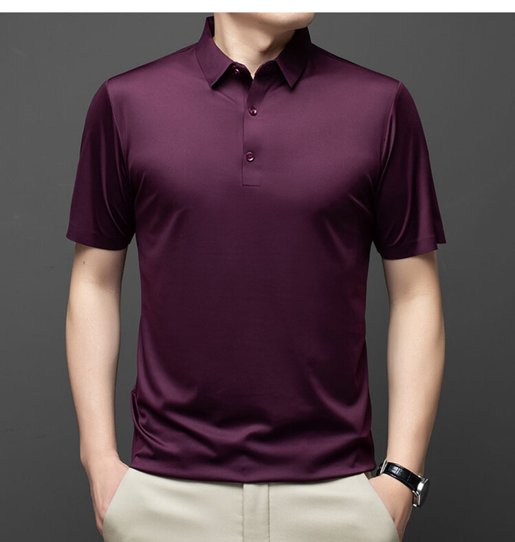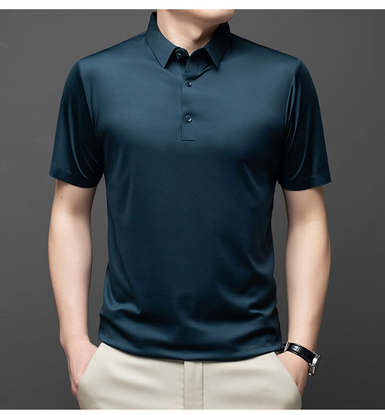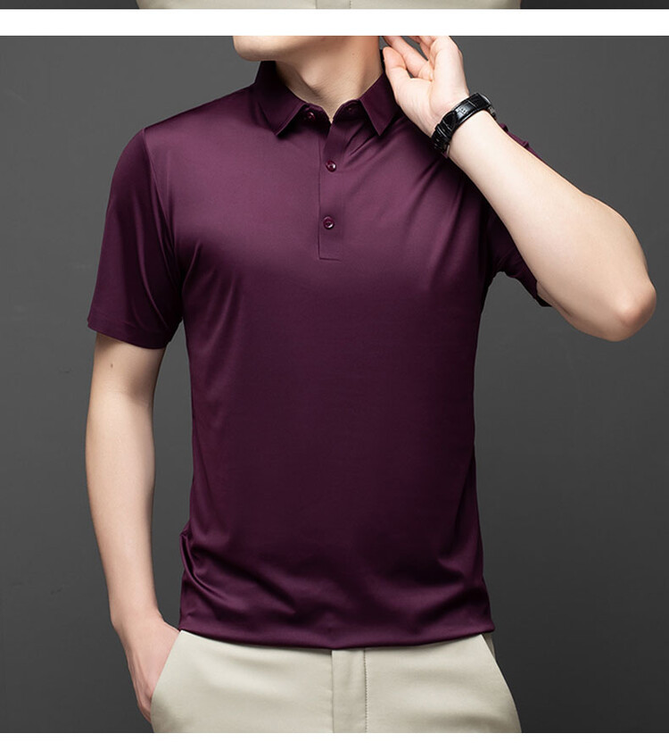 젊고 중년 반팔 티셔츠 남성용 단색 비즈니스 폴로 셔츠 비 다림질 접착제 아이스 실크 원활한 아이스 실크 옷깃 티셔츠 남성