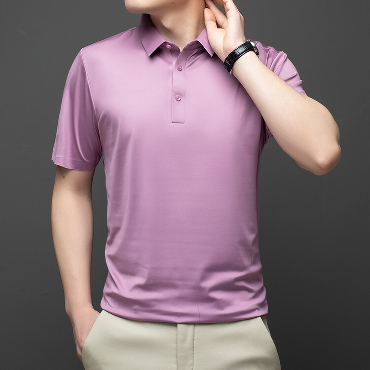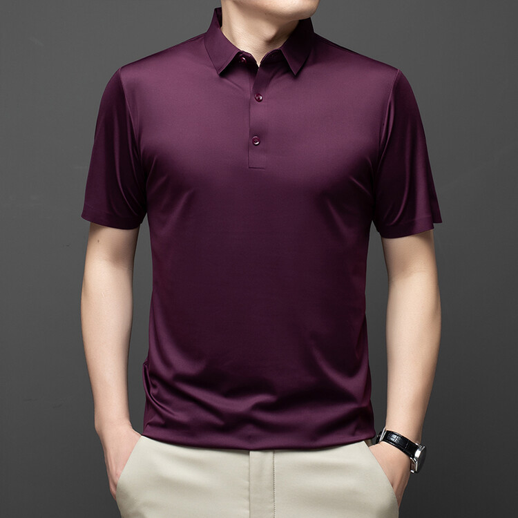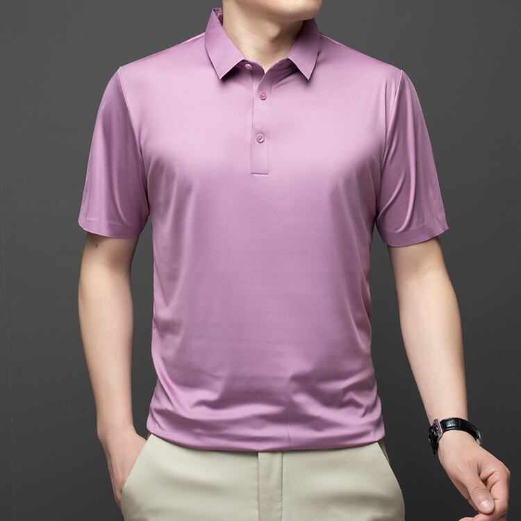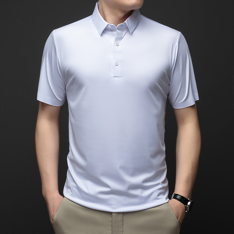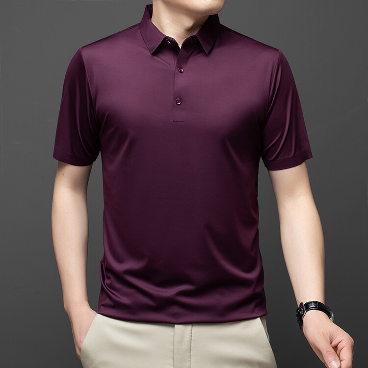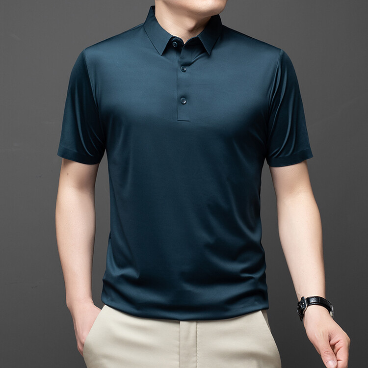 젊고 중년 반팔 티셔츠 남성용 단색 비즈니스 폴로 셔츠 비 다림질 접착제 아이스 실크 원활한 아이스 실크 옷깃 티셔츠 남성