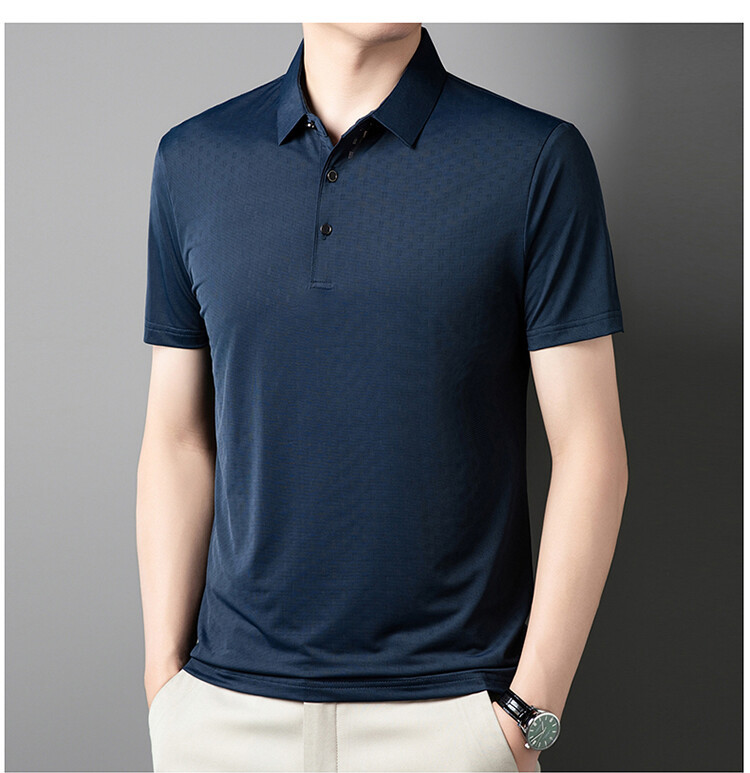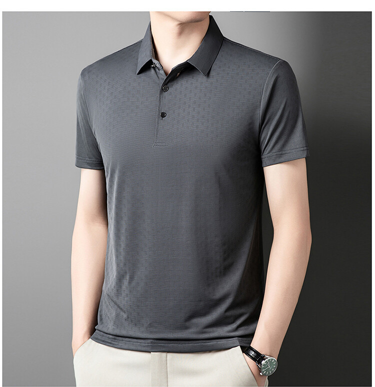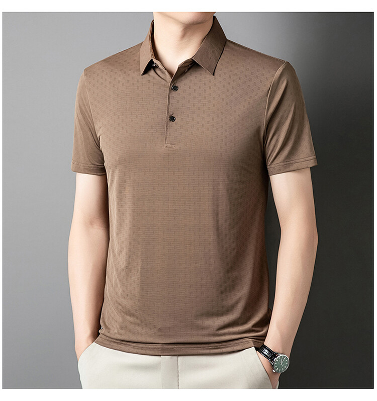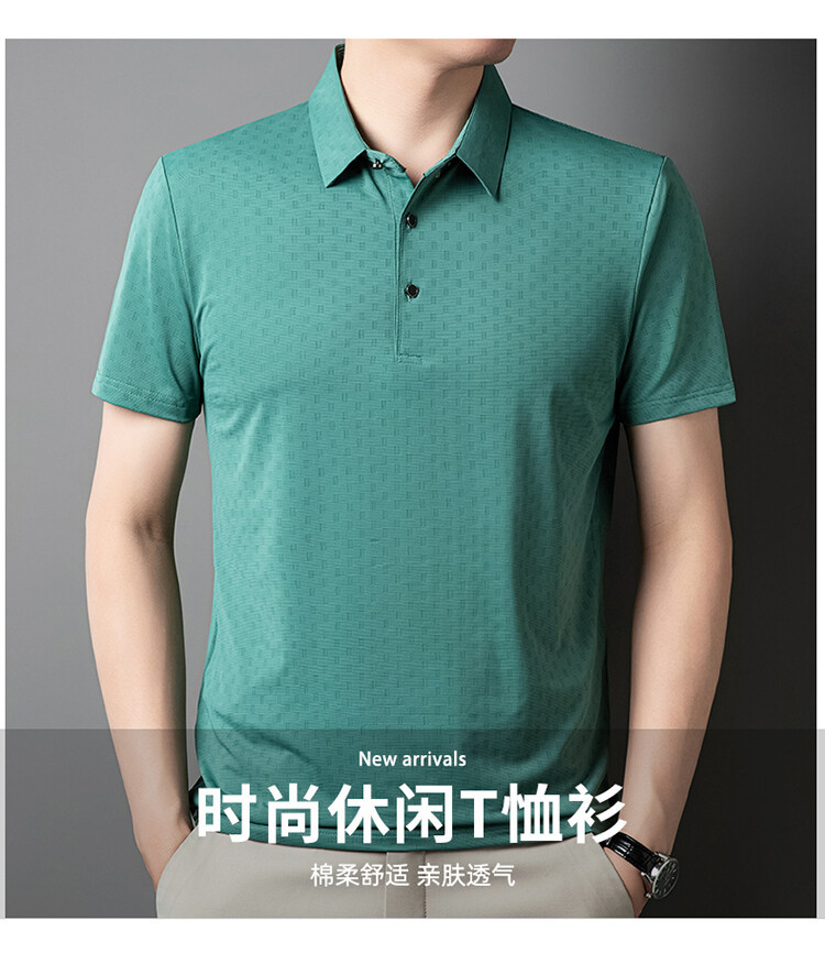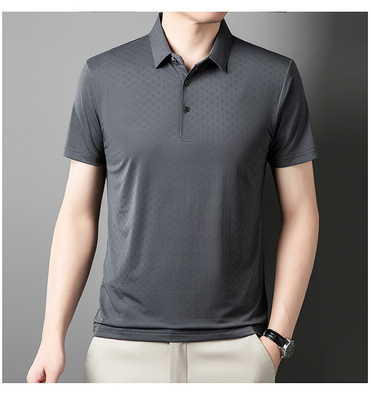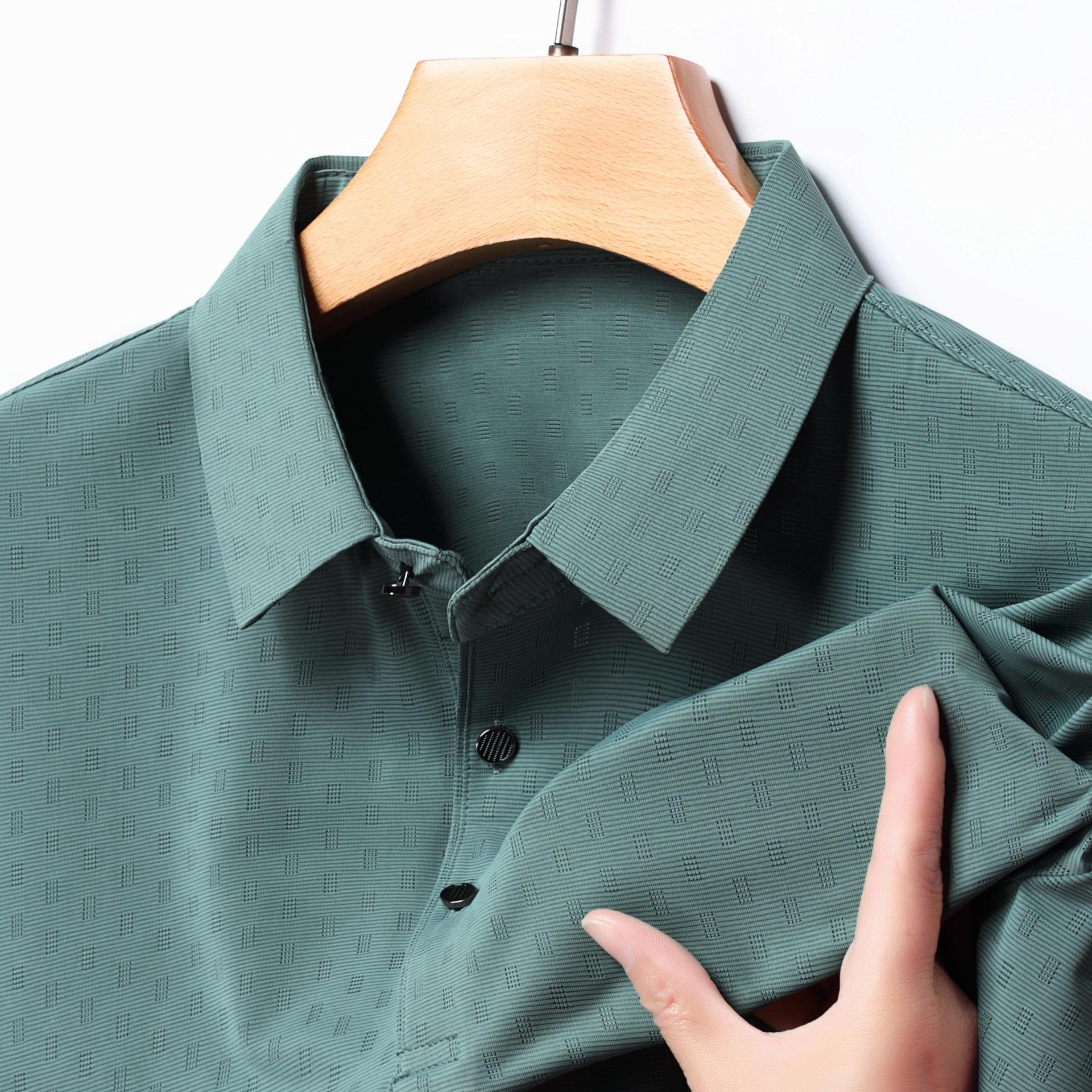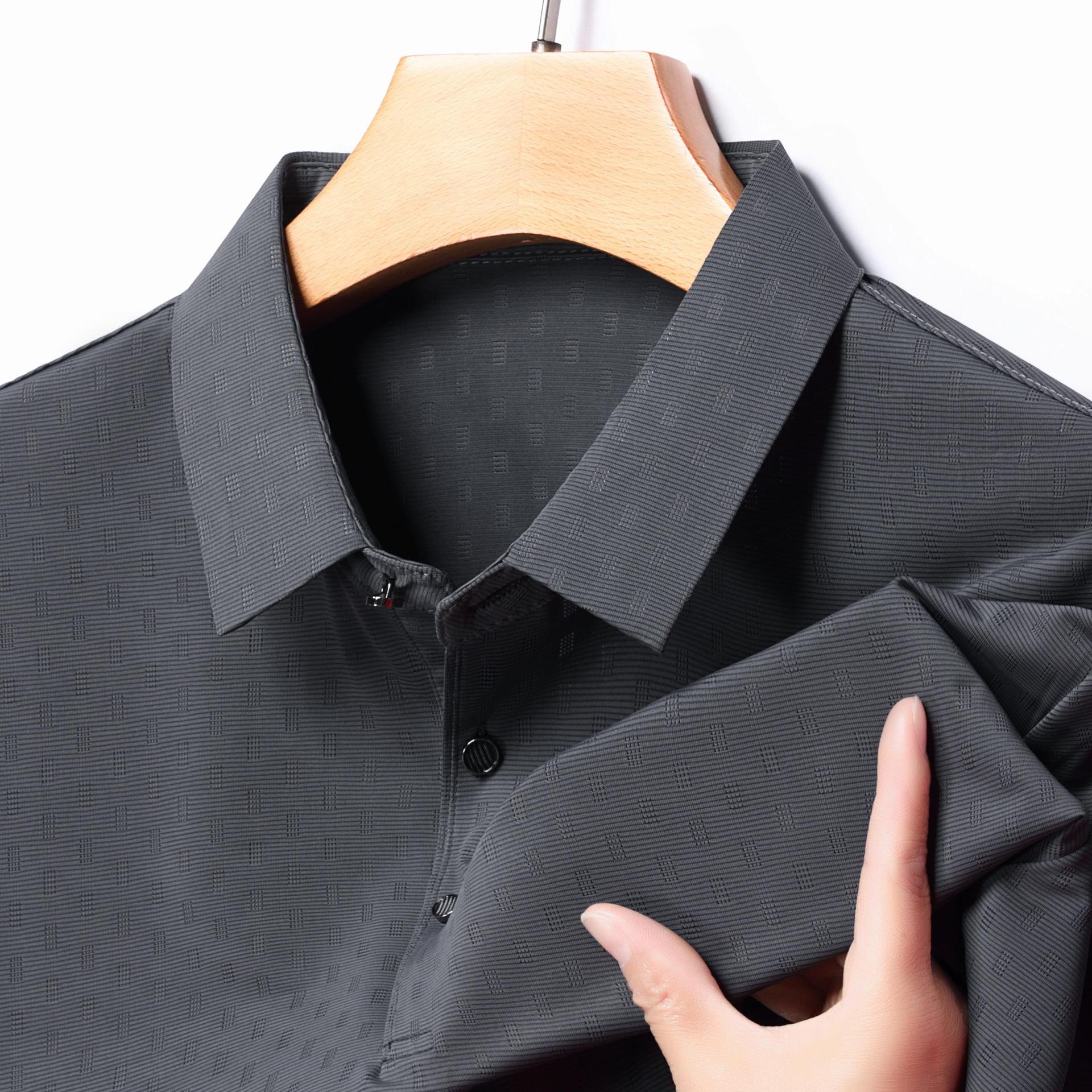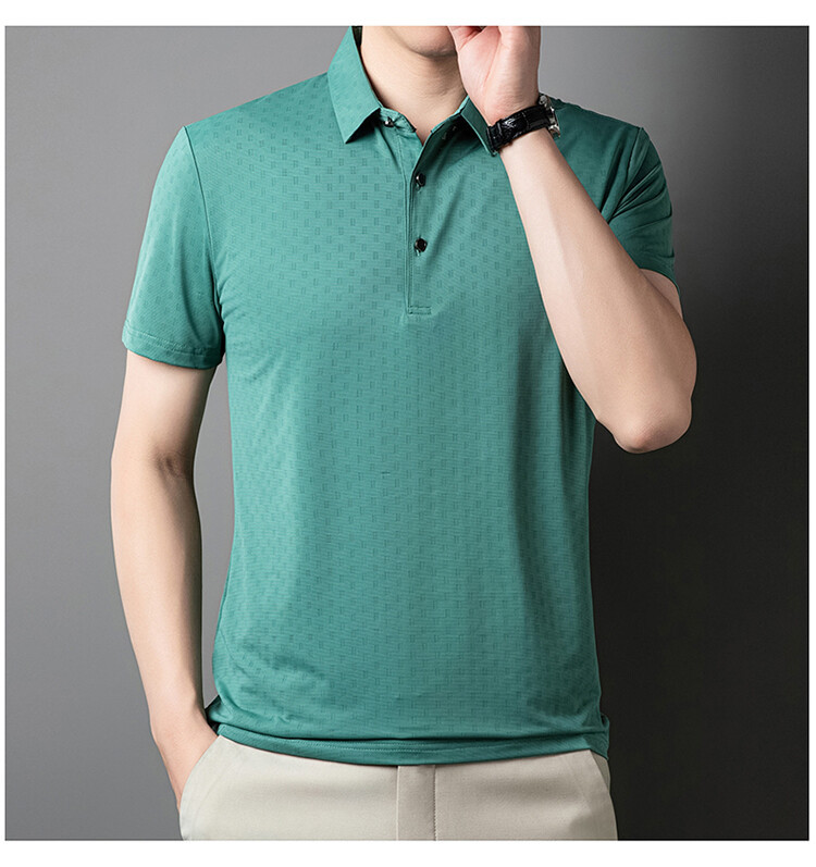 새로운 남성 옷깃 POLO 짧은 소매 여름 자카드 슬림 핏 세련된 비즈니스 청소년 주름 캐주얼 티셔츠