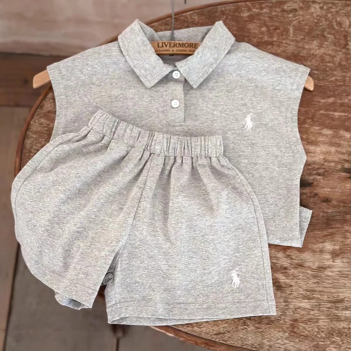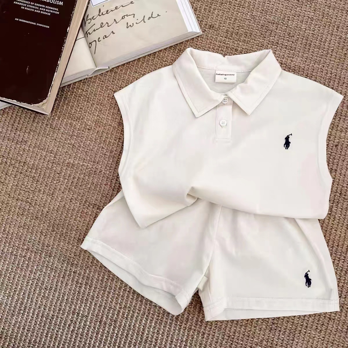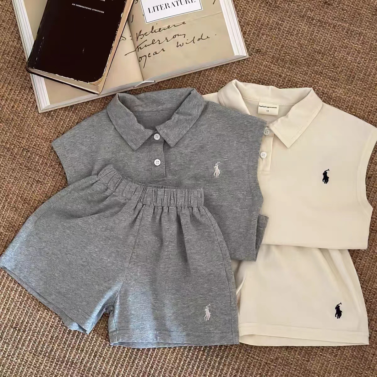 어린이 민소매 세트 여름 소년 반바지 단색 어린이 폴로 셔츠 트렌디 한 브랜드 베이비 티셔츠 투피스 세트 여성용 옷깃