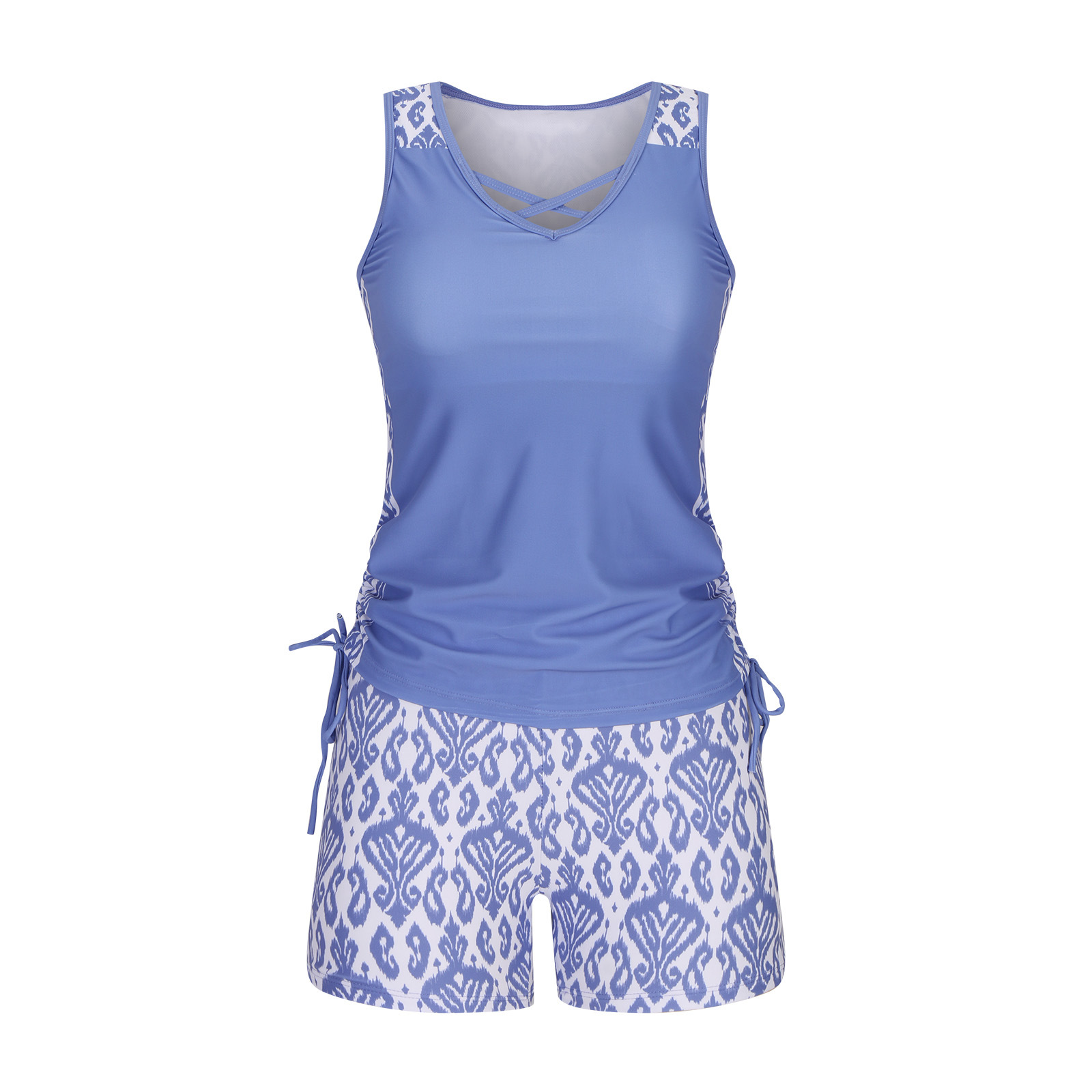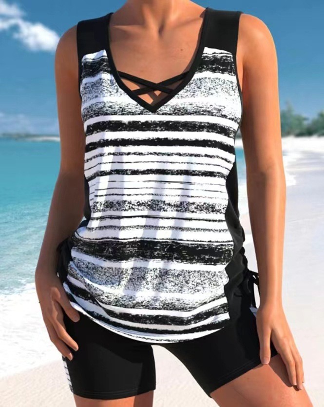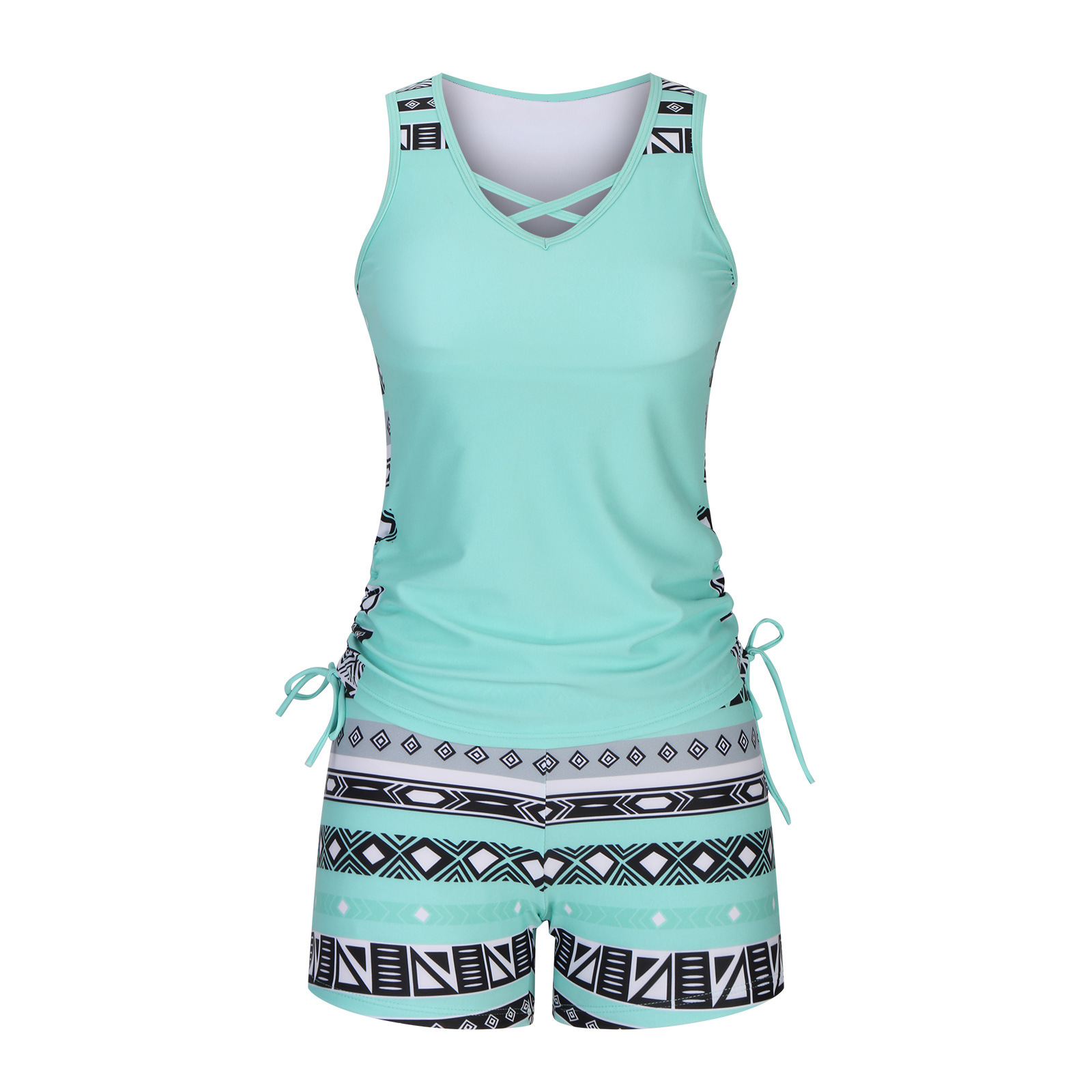 유럽과 미국 여자 스플릿 수영복 하이 허리 수영복 스트랩 탑 아마존 AliExpress 비치 수영복 투피스 세트