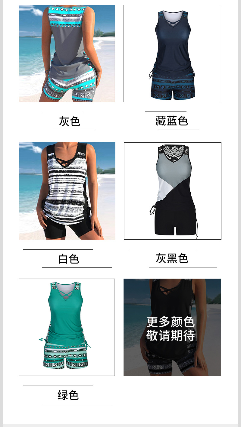 유럽과 미국 여자 스플릿 수영복 하이 허리 수영복 스트랩 탑 아마존 AliExpress 비치 수영복 투피스 세트스토어 가기