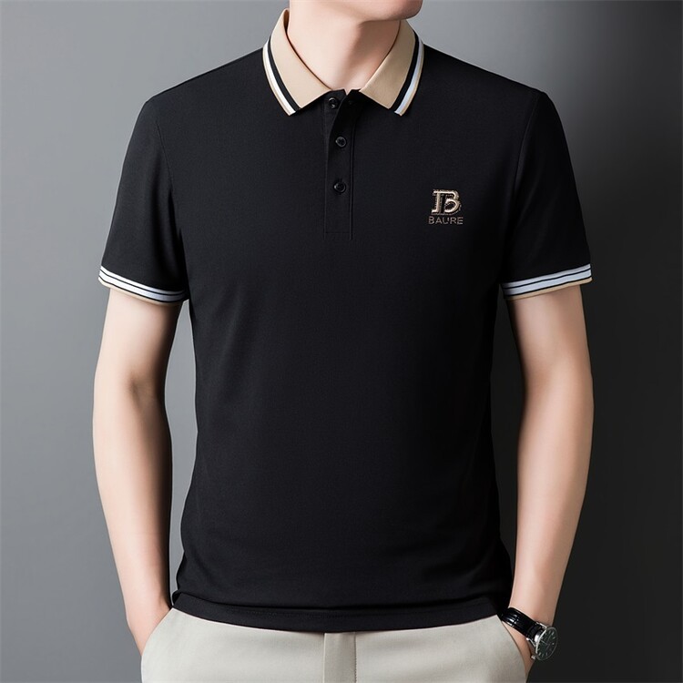 패션 브랜드 폴로 셔츠 남성 반팔 여름 새로운 자수 옷깃 티셔츠 비즈니스 캐주얼 고급 자수 진주 면화 투명