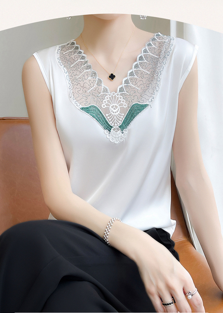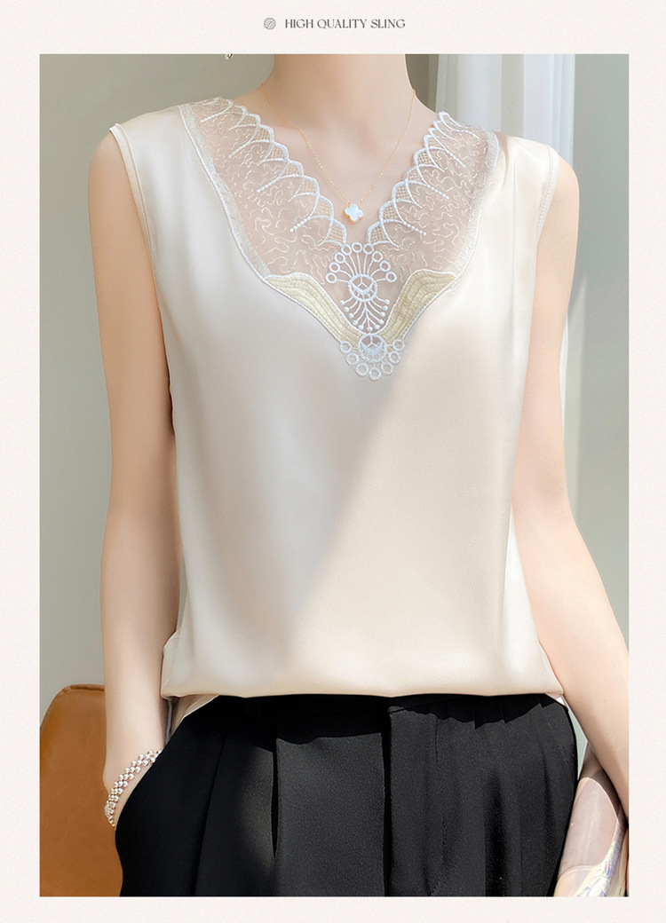 프랑스 스타일 캐미솔 여성용 내복 봄과 여름 새로운 새틴 아우터웨어 레이스 고급 민소매 실크 탑 아우터 웨어