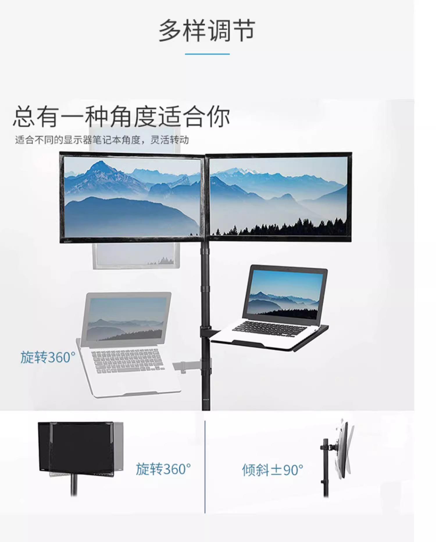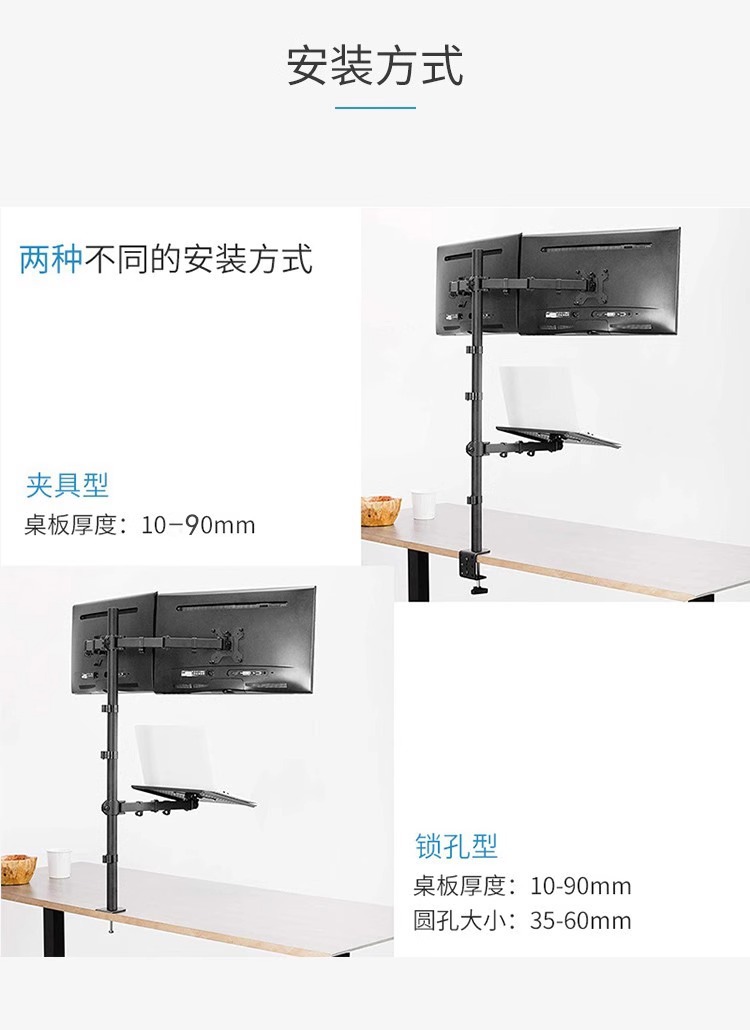 Zilcheng 모니터 스탠드 듀얼 스크린 상승 노트북 트레이 랙 화면 접합 리프팅 회전 암