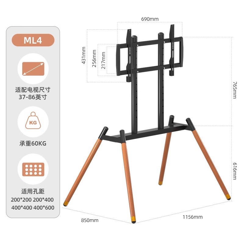 예술적 바닥 TV 스탠드 거실 침실 휴대용 트롤리 보편적 인 간단한 디스플레이 스탠드 65/70/75 인치