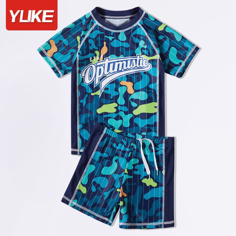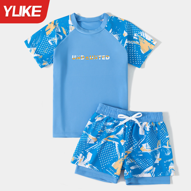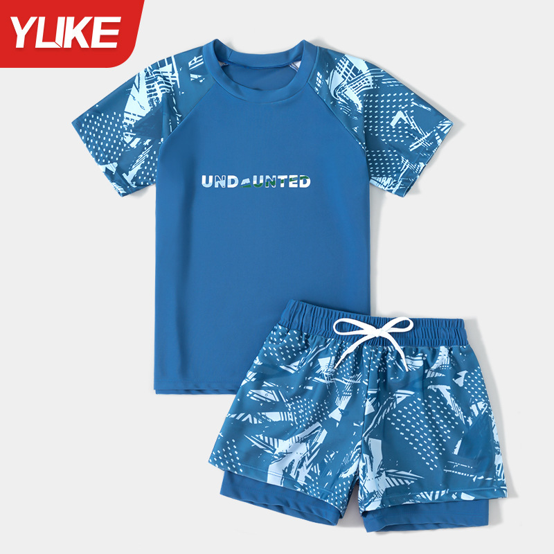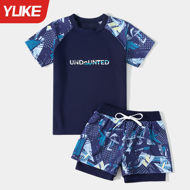 어린이 수영복 소년 분할 수영복 소형, 중형 및 대형 어린이 태양 보호 빠른 건조 수영 세트 2022 수영 트렁크 도매