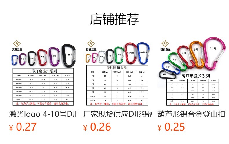 本店产品还有各种型号的登山扣、行李牌、铃铛、药罐、书圈等,薄利多销,欢迎批发!有定做颜色或者LOGO的朋友也可以联系!