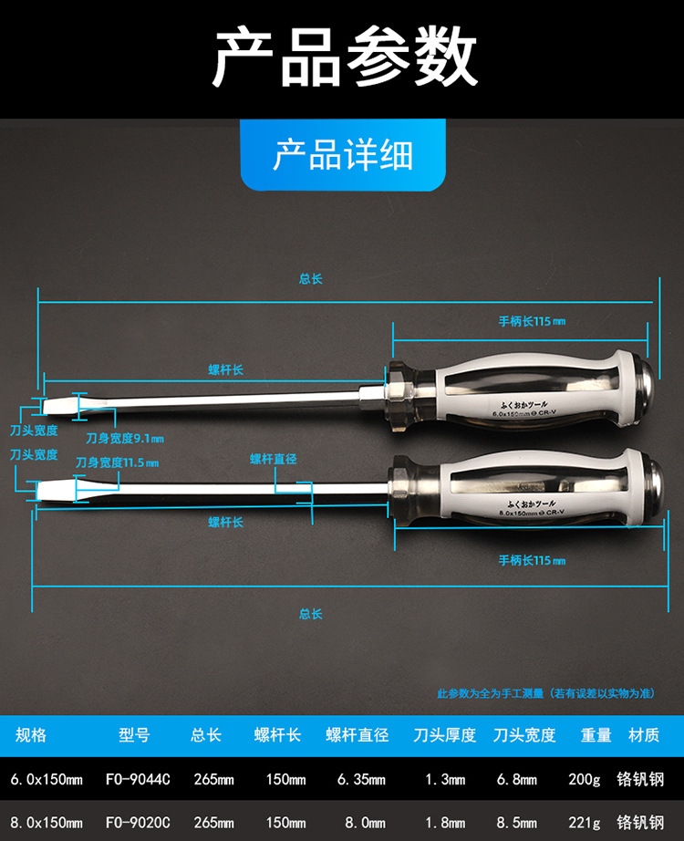 후쿠오카 산업 등급 피어싱 스크루 드라이버 슈퍼 하드 타악기 드라이버 강한 자기 플랫 스크루 드라이버 플랫 드라이버 플랫 헤드 크로스 커터 세트