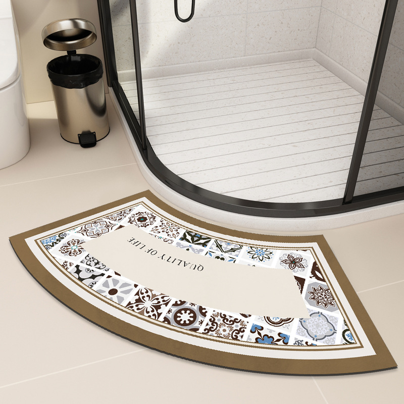 프랑스 스타일의 욕실 바닥 매트 원형 아크 욕실 문 흡수성 미끄럼 방지 바닥 매트 팬 모양의 화장실 매트 멀티 소재