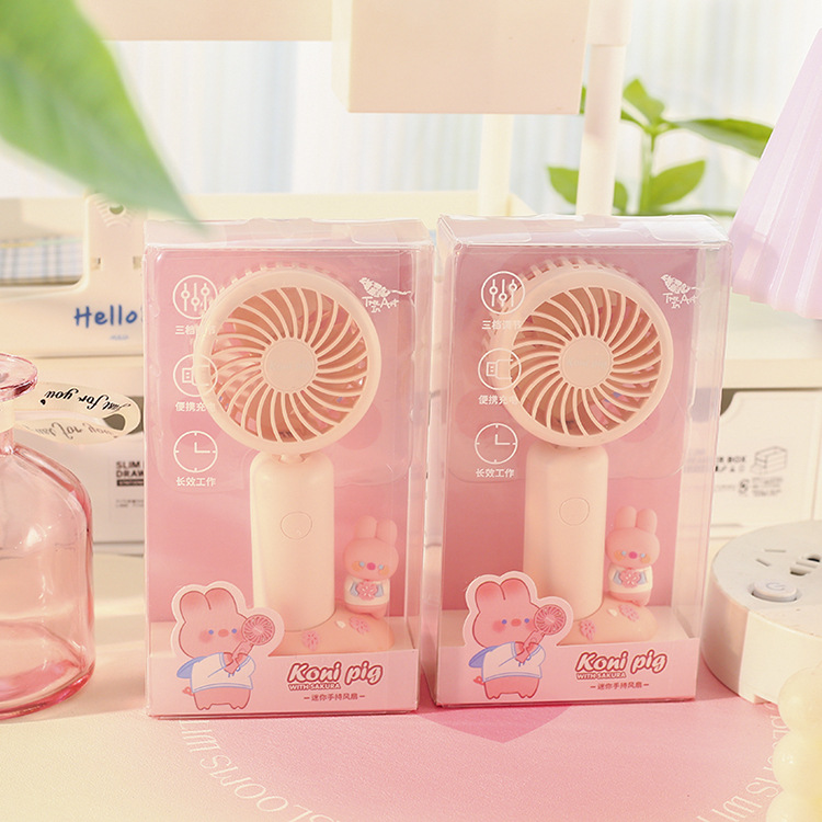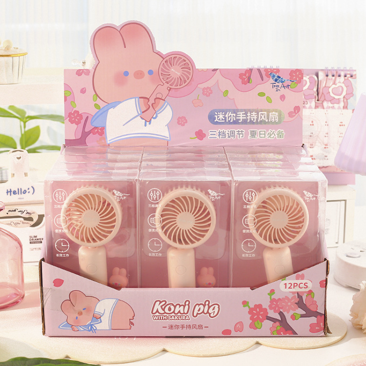 Koni 돼지 벚꽃 미니 핸드 헬드 팬 귀여운 돼지 여름 필수 핸드 헬드 작은 팬 휴대용 팬스토어 가기