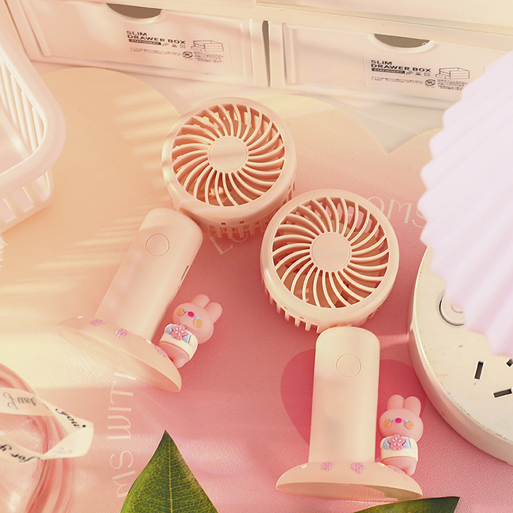 Koni 돼지 벚꽃 미니 핸드 헬드 팬 귀여운 돼지 여름 필수 핸드 헬드 작은 팬 휴대용 팬