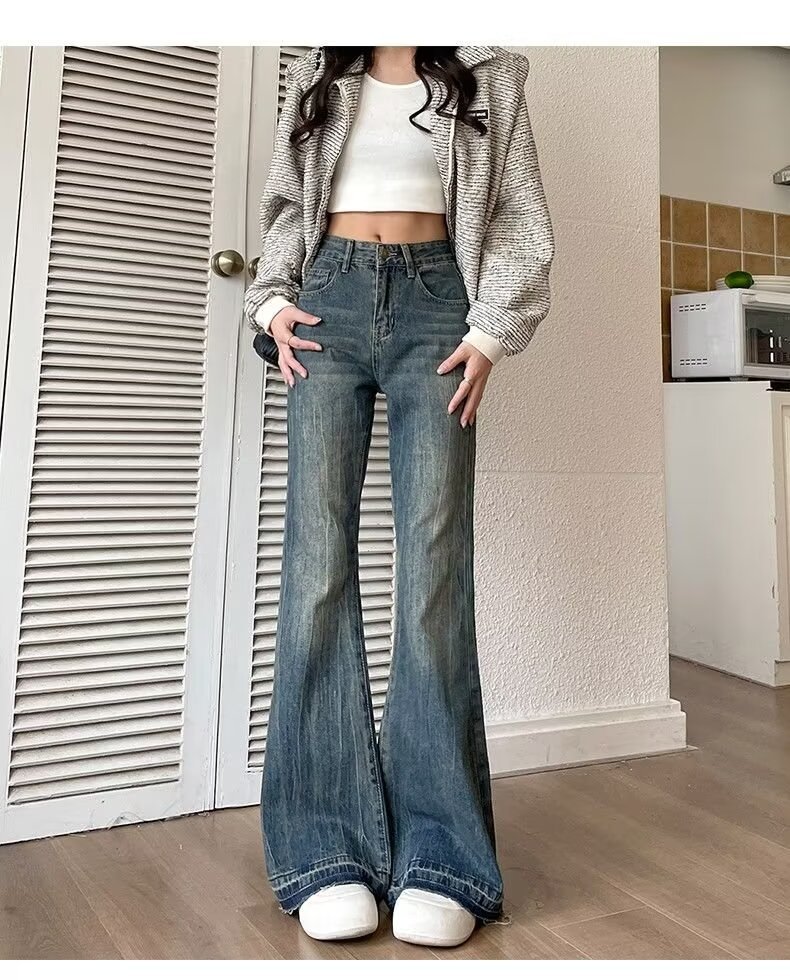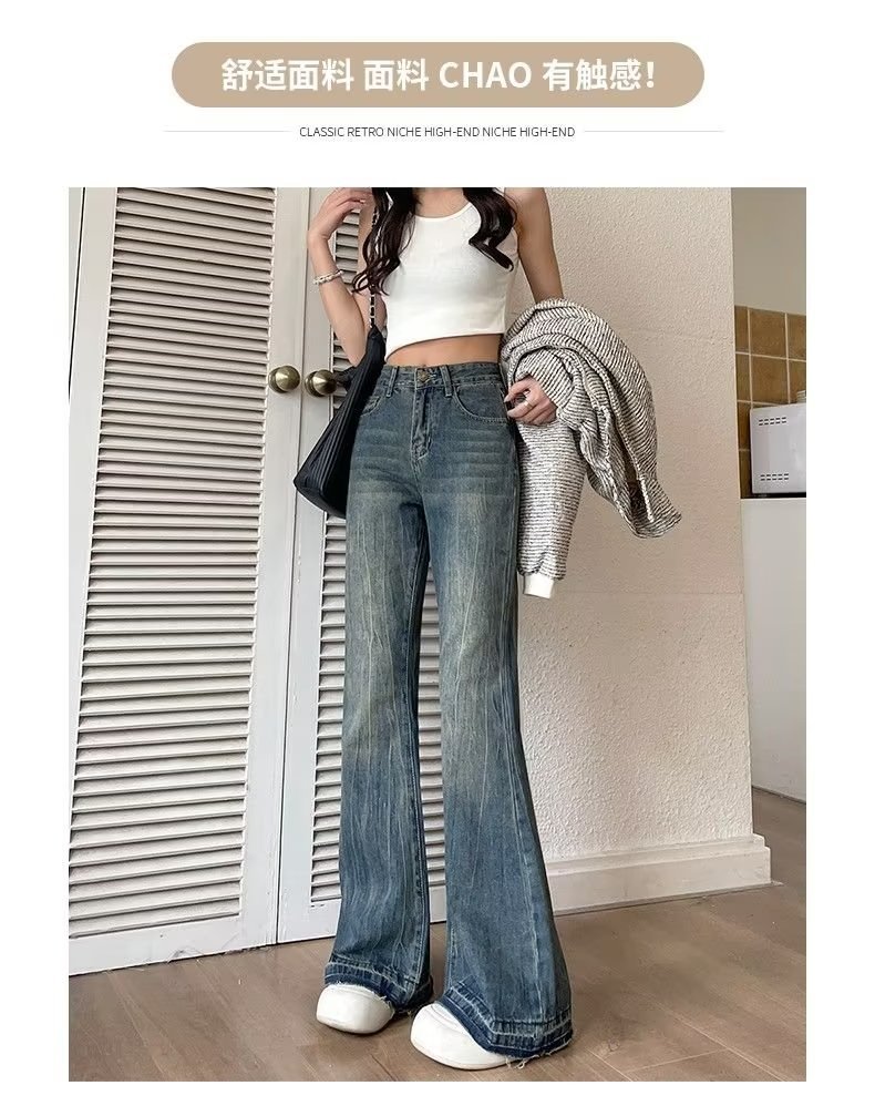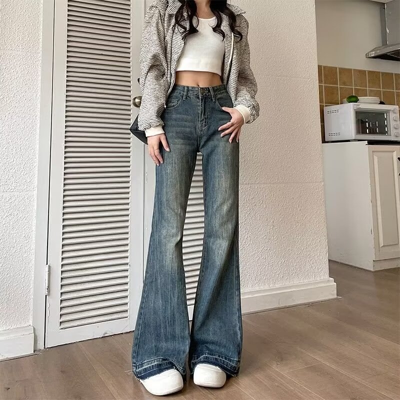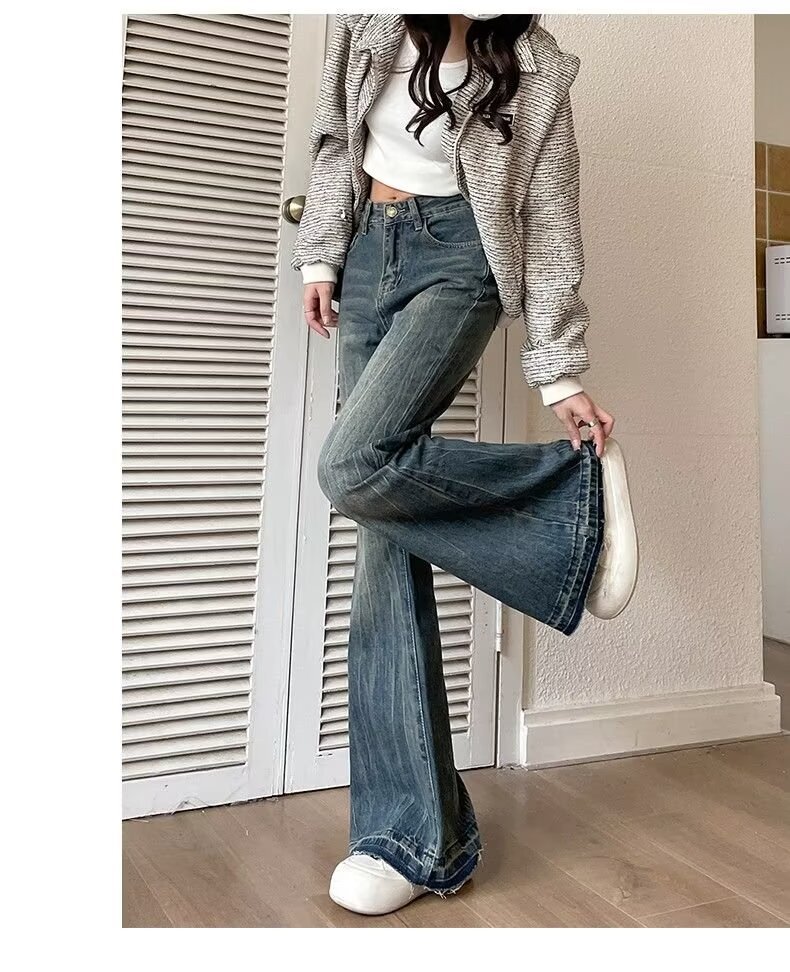 여성용 비 다리 스키니 청바지 2024 새로운 인기 높은 허리 슬리밍 스트레이트 와이드 레그 플레어 팬츠스토어 가기