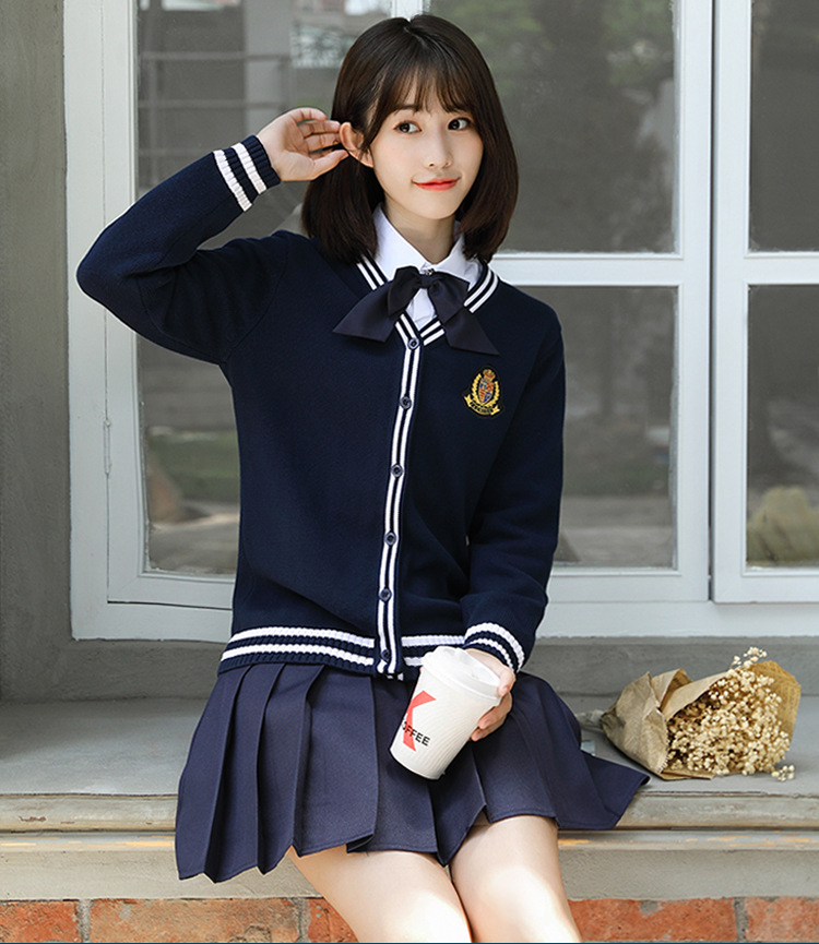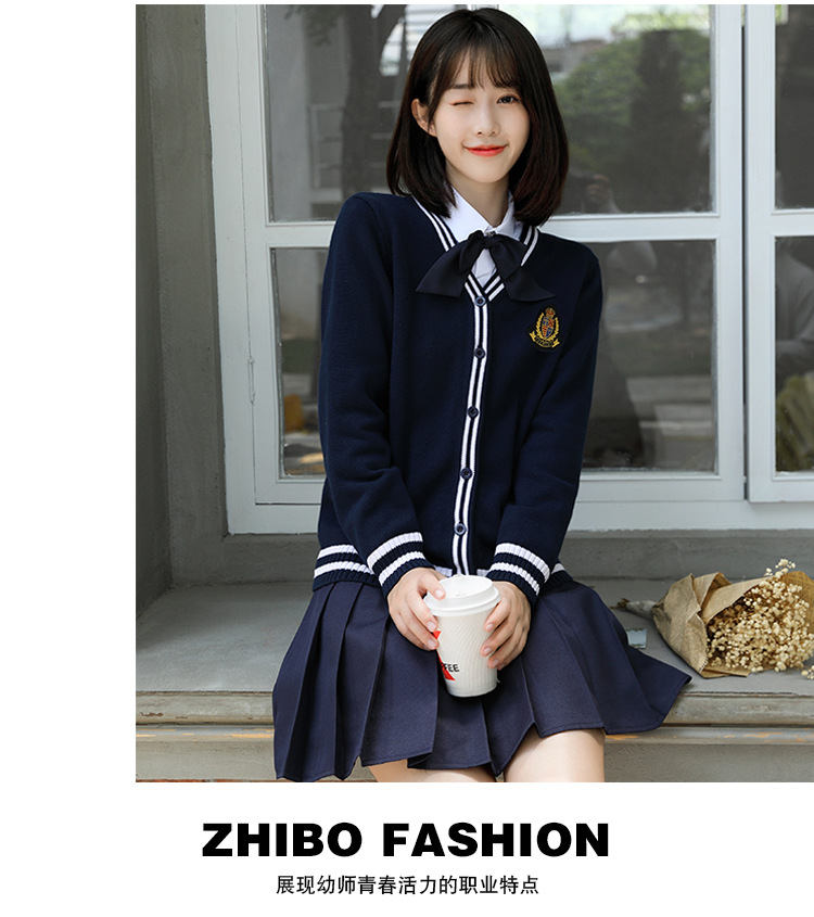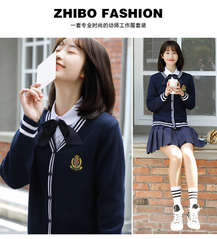 봄과 가을 대학 스타일 긴 소매 울 카디건 유치원 교사의 작업 옷 조기 교육 교사의 니트 재킷스토어 가기