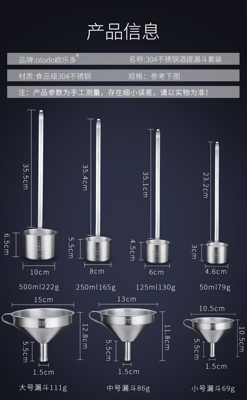 Oledo 오일 깔때기 304 스테인레스 스틸 와인 걸이 필터 넷 스푼 가정용 대형 구경 와인 린커