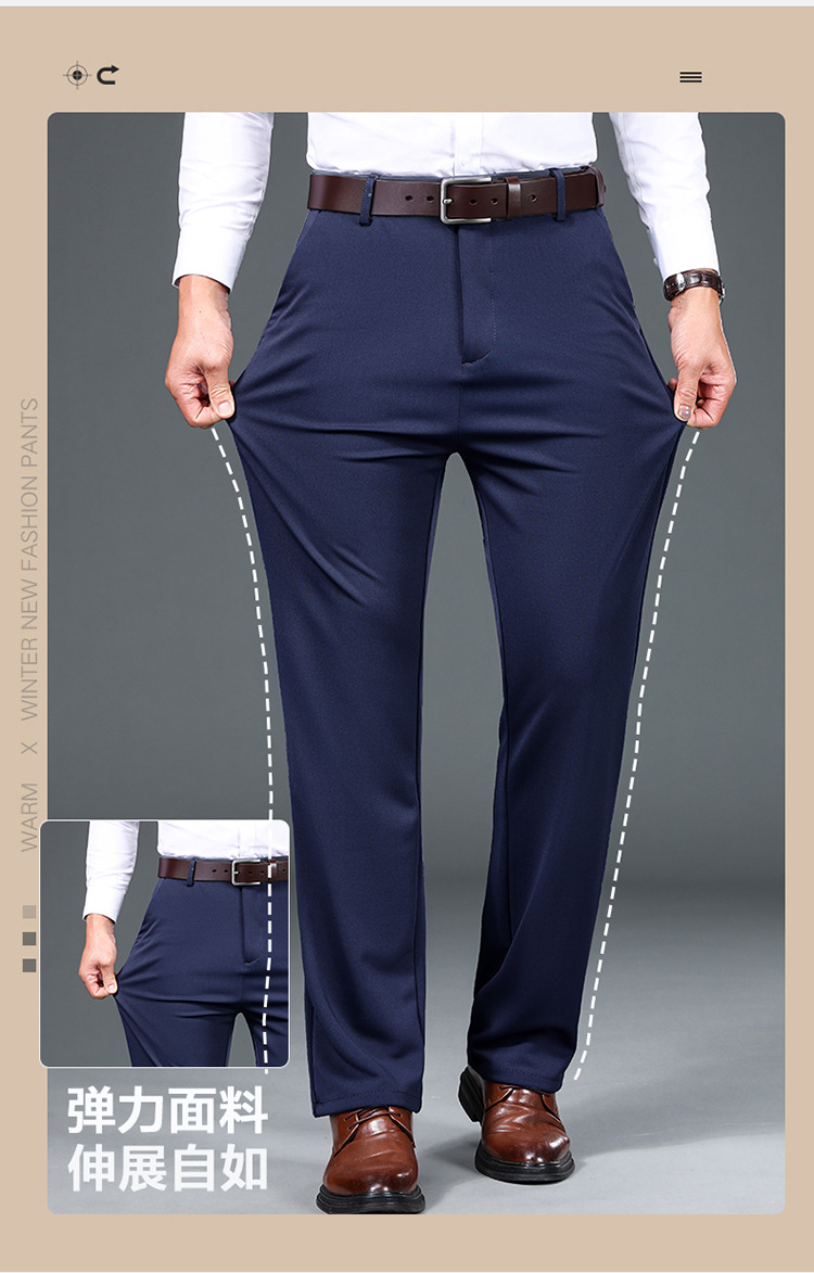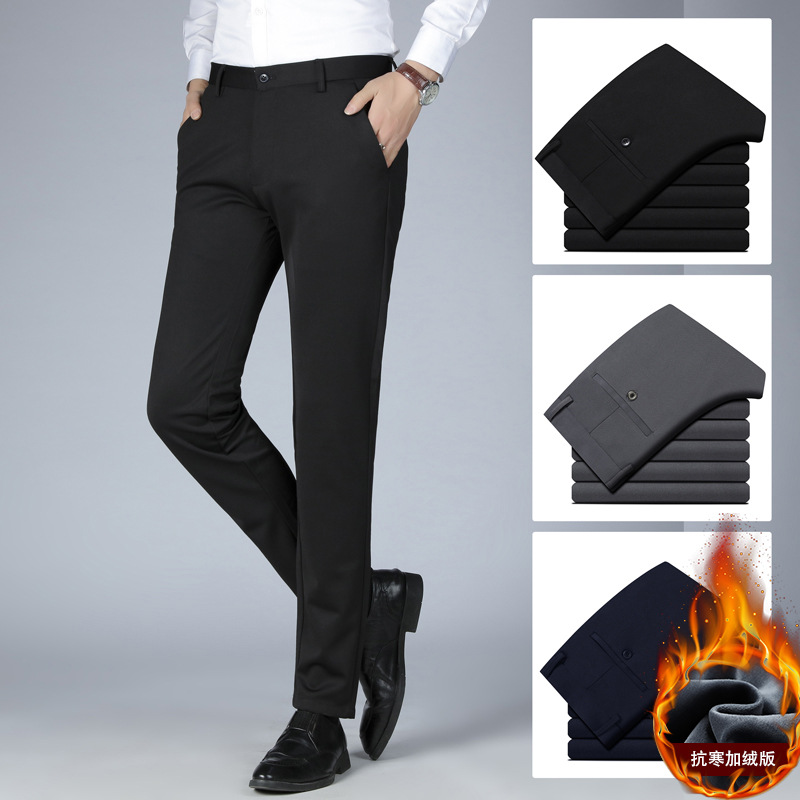 가을과 겨울 기모 두꺼운 남성용 바지 스트레칭 비즈니스 바지 남성 스트레이트 슬림 핏 세트 바지 긴 바지 캐주얼 바지 남성