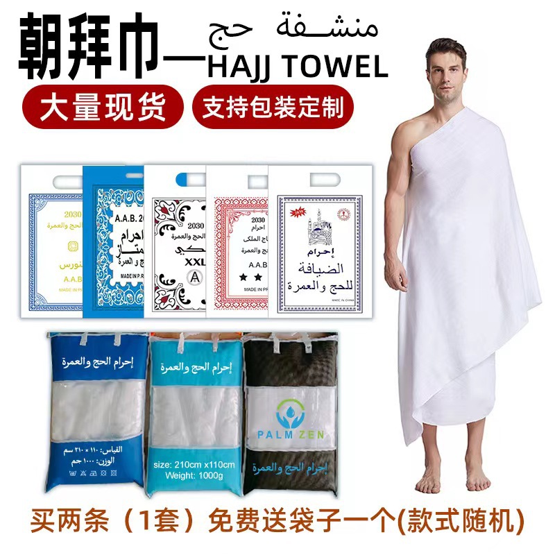공장 공급 순례 수건 Hajj 의류 폴리 에스테르 화이트 타월 엠보싱 비치 타월 대외 무역 마이크로 화이버 가공 로그스토어 가기