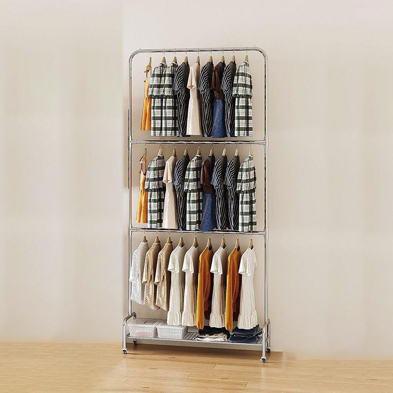 더블 레이어 조정 가능한 행거 바닥 스테인레스 스틸 의류 랙 여성 의류 매장 중다오 선반 바퀴 의류 디스플레이 랙스토어 가기