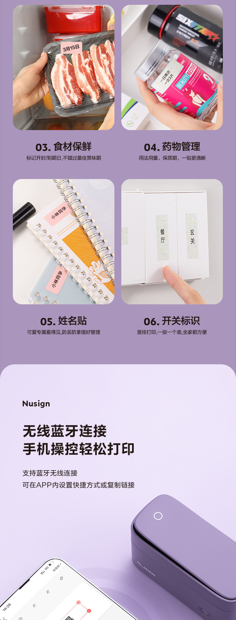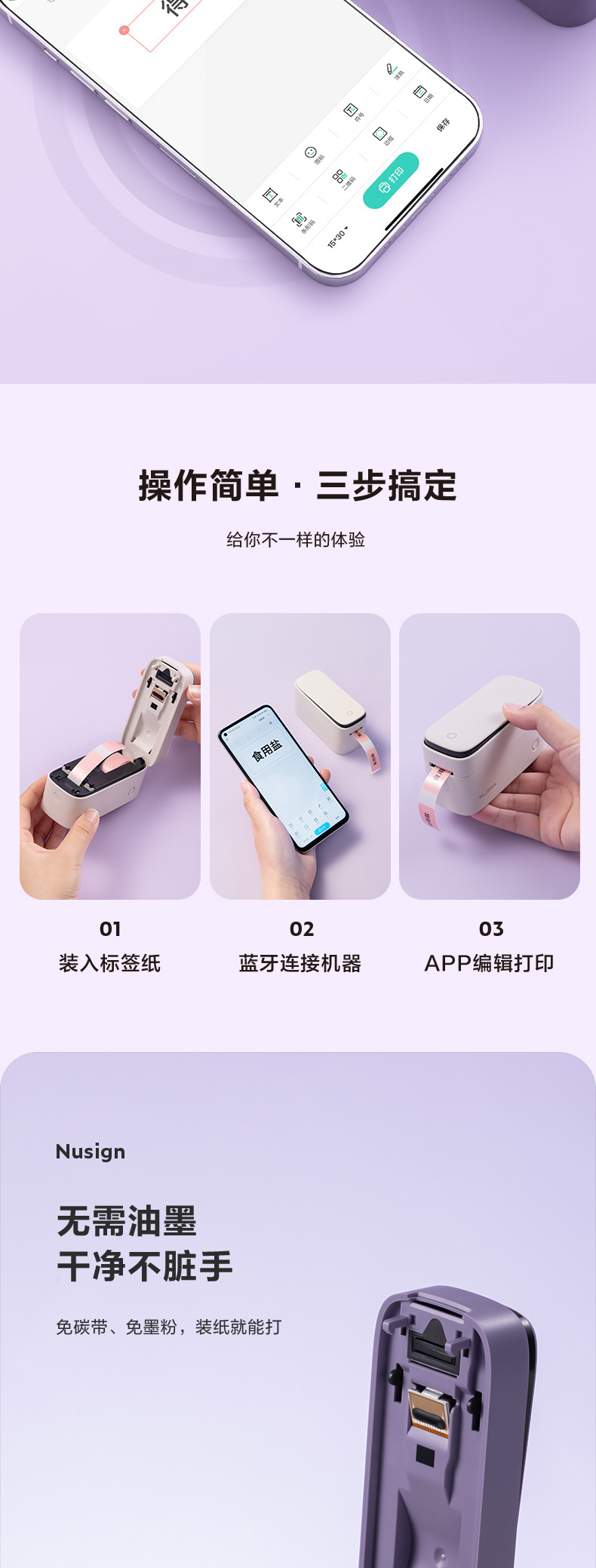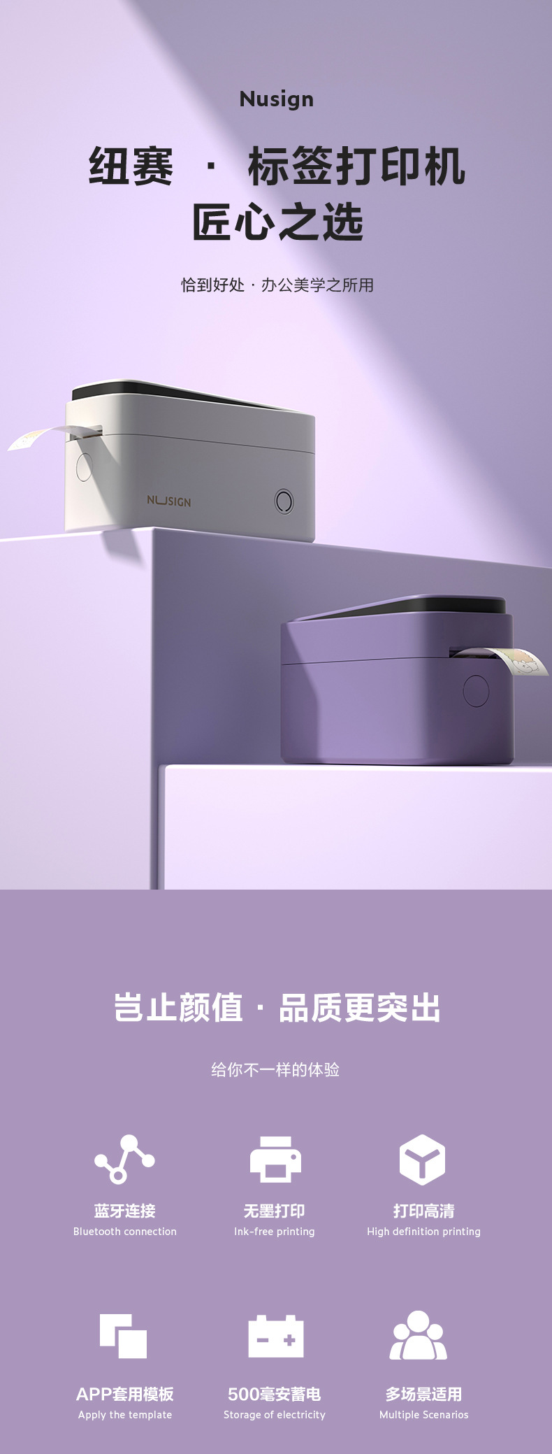 Delinius White Q3 반 인치 열 라벨 프린터 휴대용 무선 블루투스 연결 사무실 홈