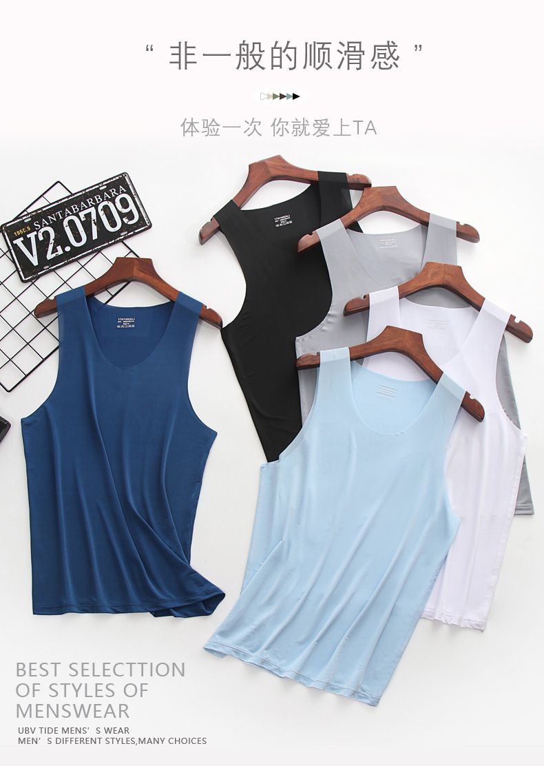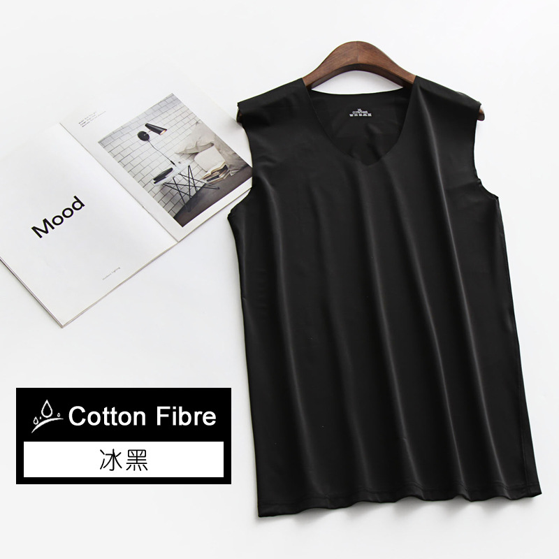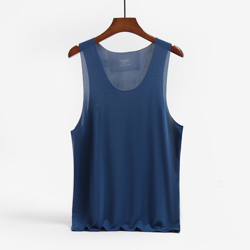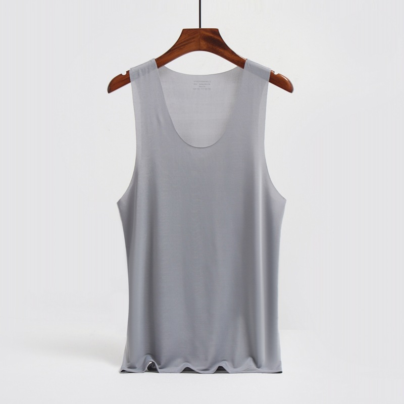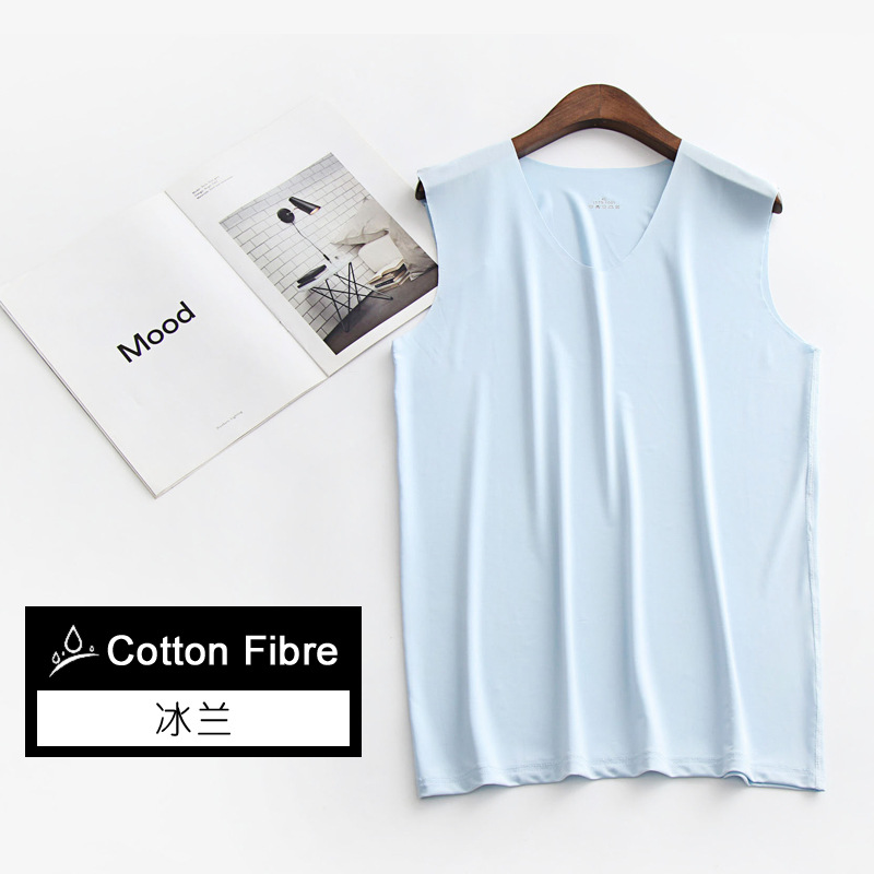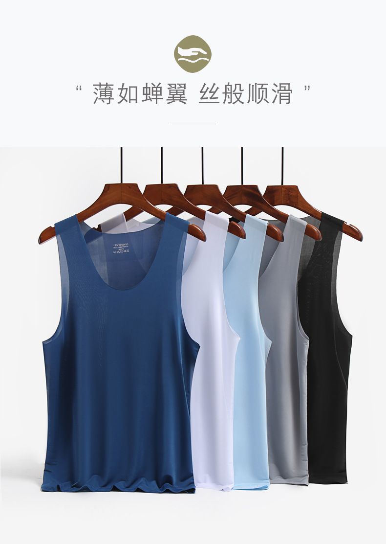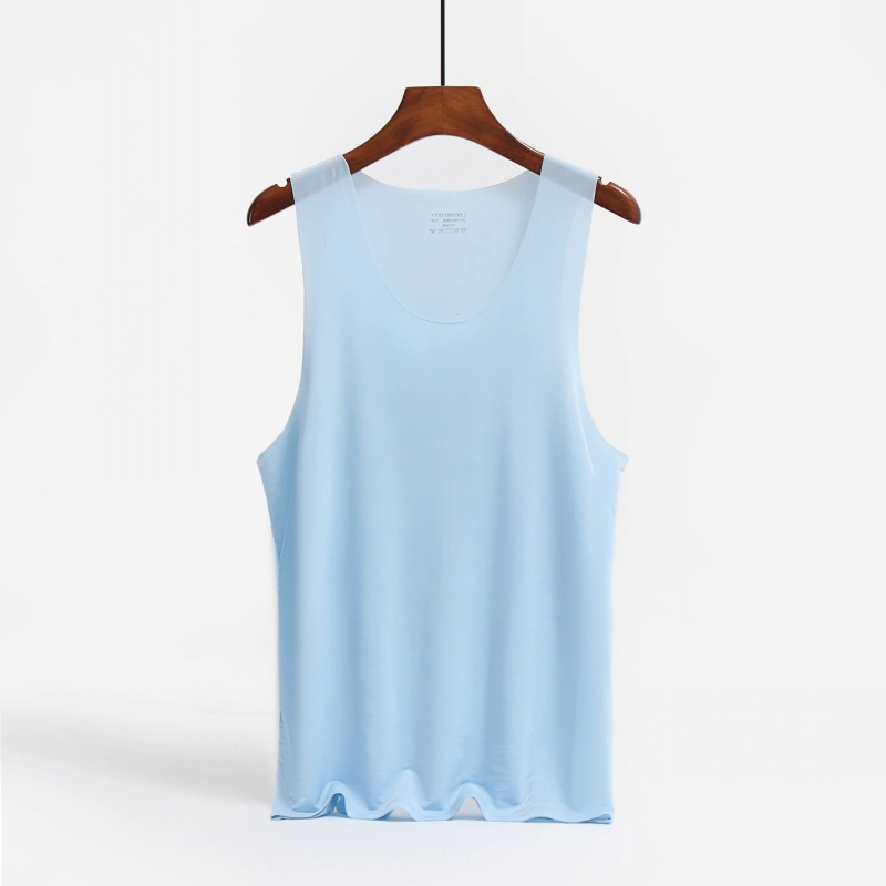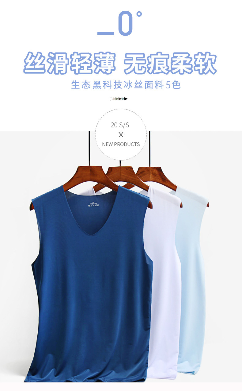 남성용 와이드 숄더 아이스 실크 조끼, 여름철 아이스 느낌의 무봉제 얇은 베이스 레이어, 피트니스 허리밴드 스포츠 V넥 민소매 셔츠스토어 가기