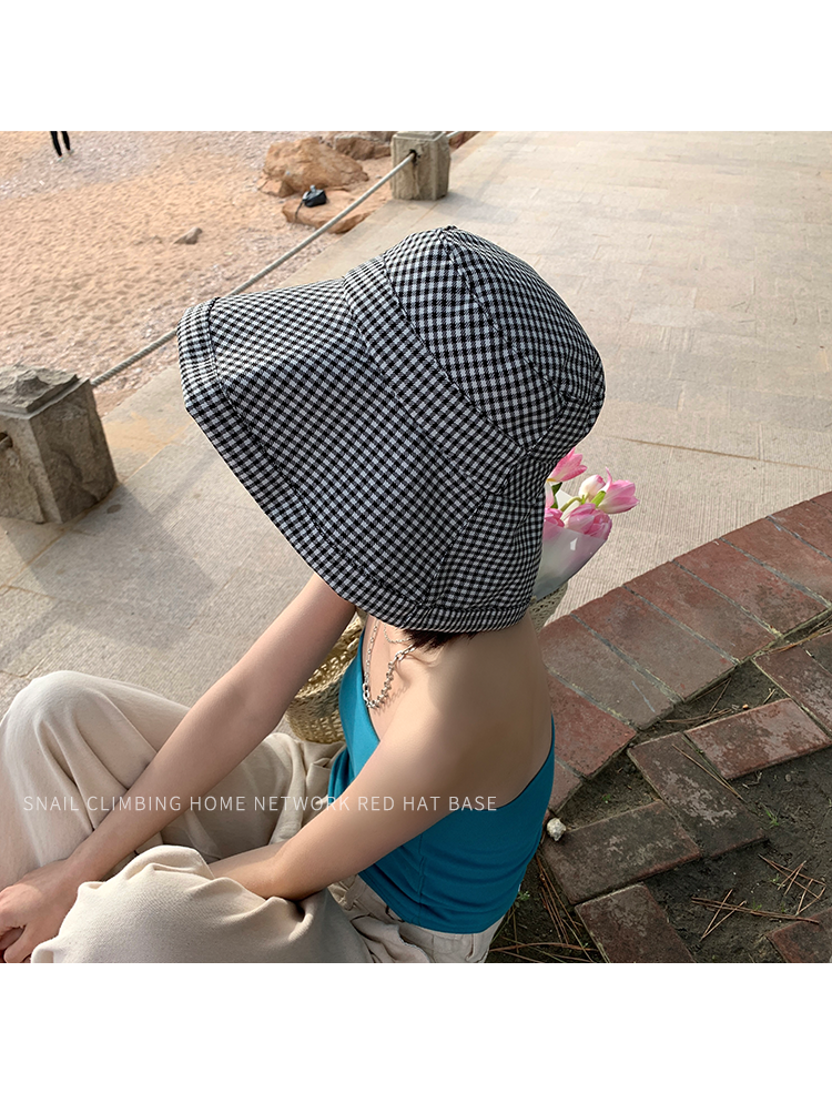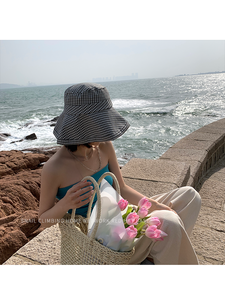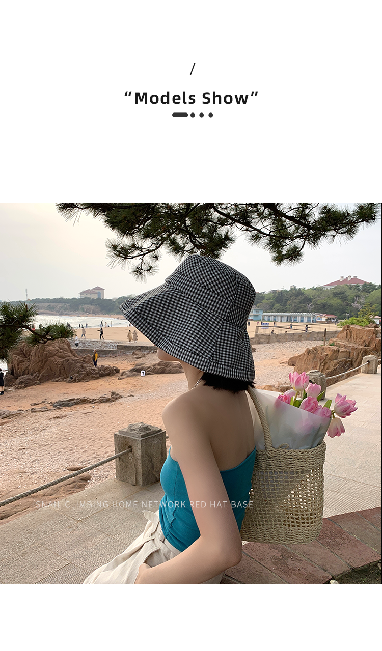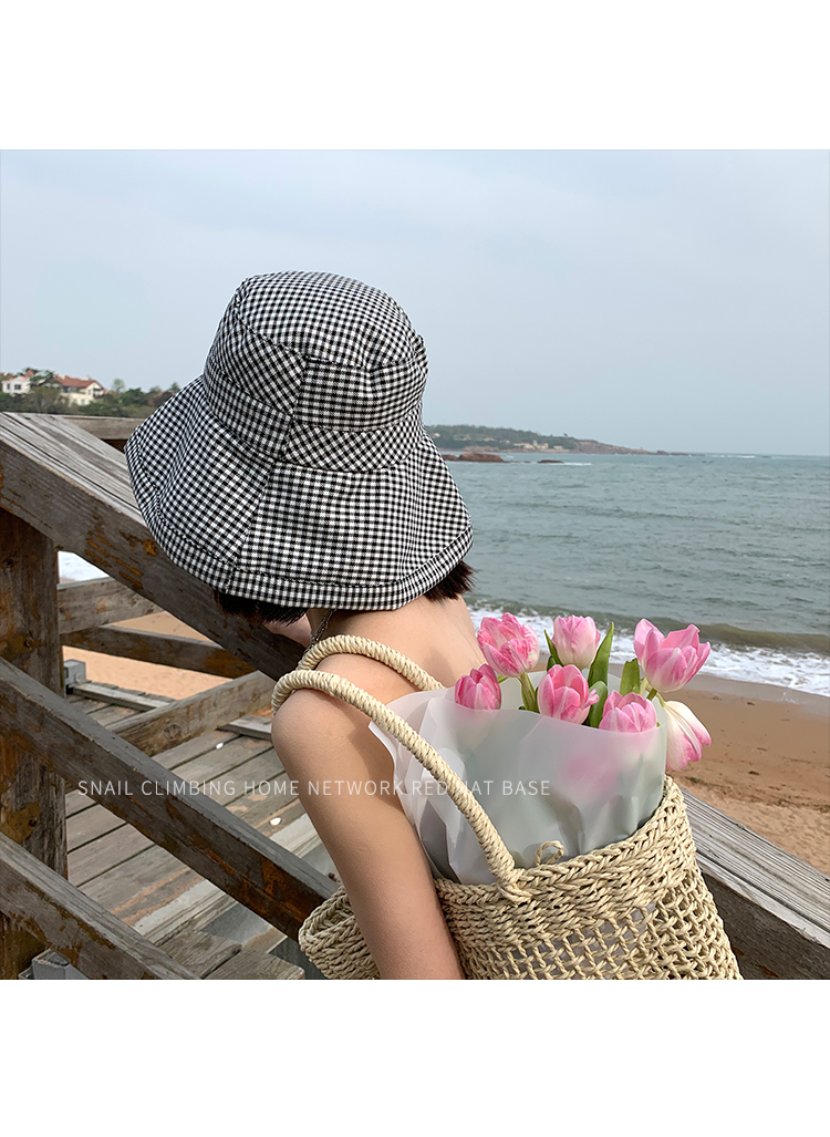 패션 어부 모자 복고풍 스타일 houndstooth 태양 모자 여성 한국 스타일 거리 다목적 패션 모자 캐주얼 분지 모자 패션스토어 가기