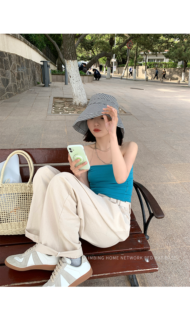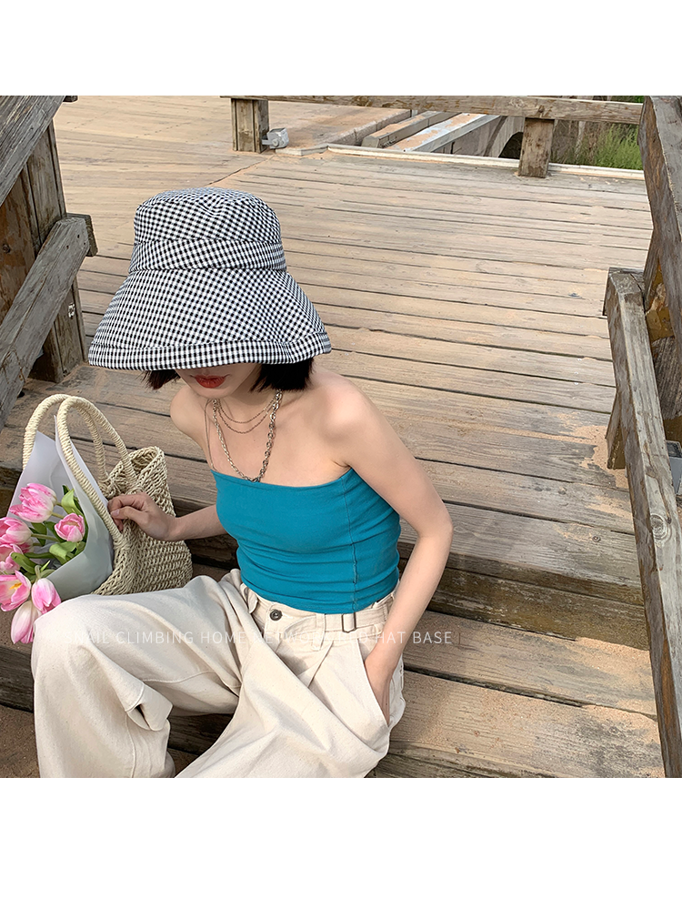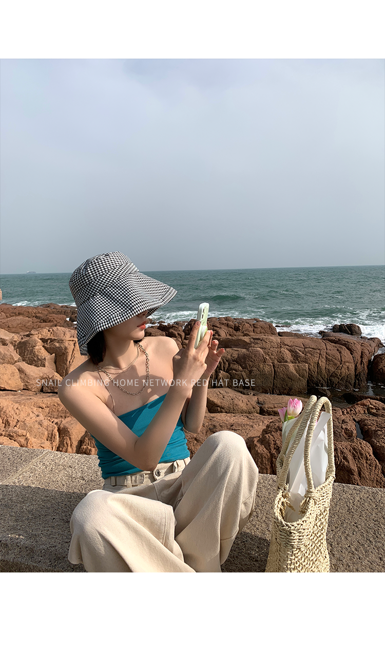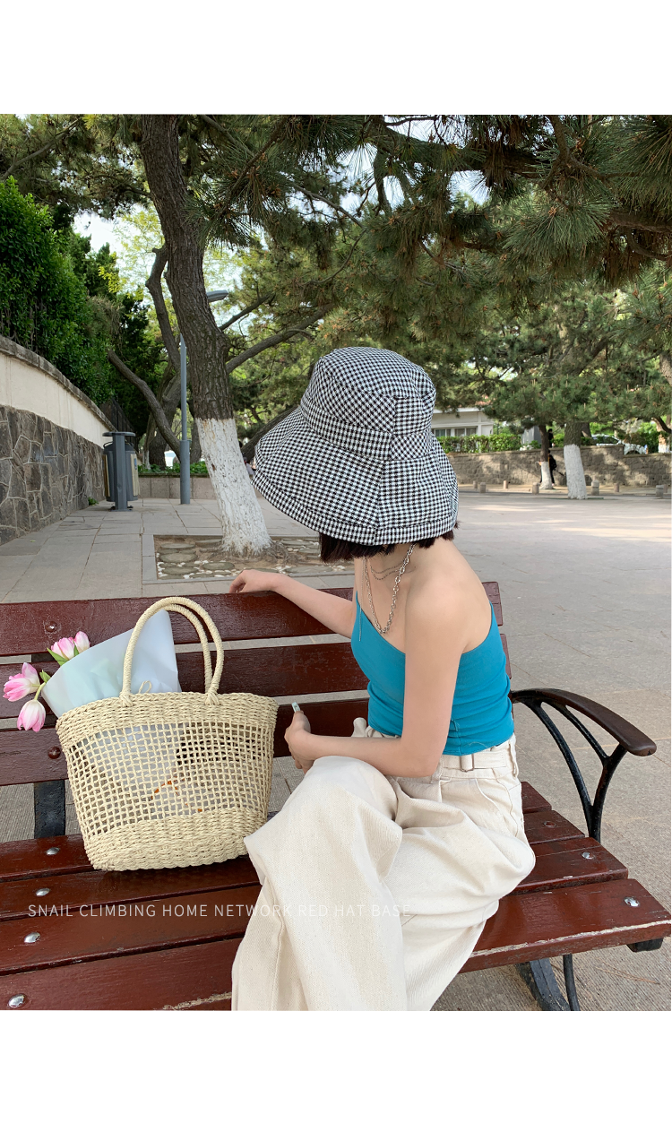패션 어부 모자 복고풍 스타일 houndstooth 태양 모자 여성 한국 스타일 거리 다목적 패션 모자 캐주얼 분지 모자 패션스토어 가기