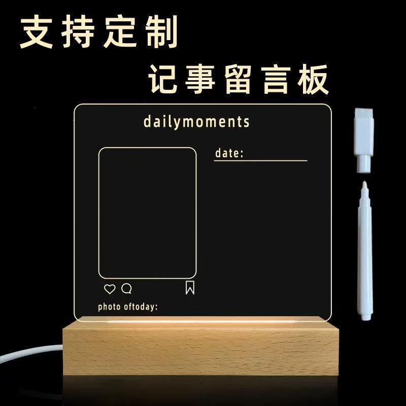 국경을 넘는 선물용 나무 받침대 손글씨 공백 메시지 보드 USB 3D 무드등 아크릴 분위기 DIY 메모판스토어 가기