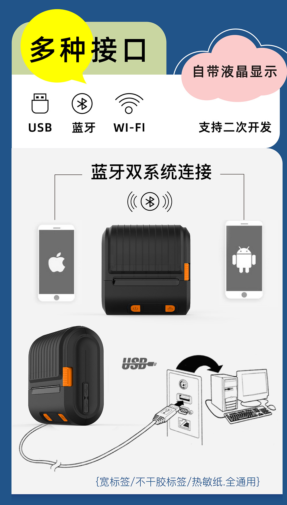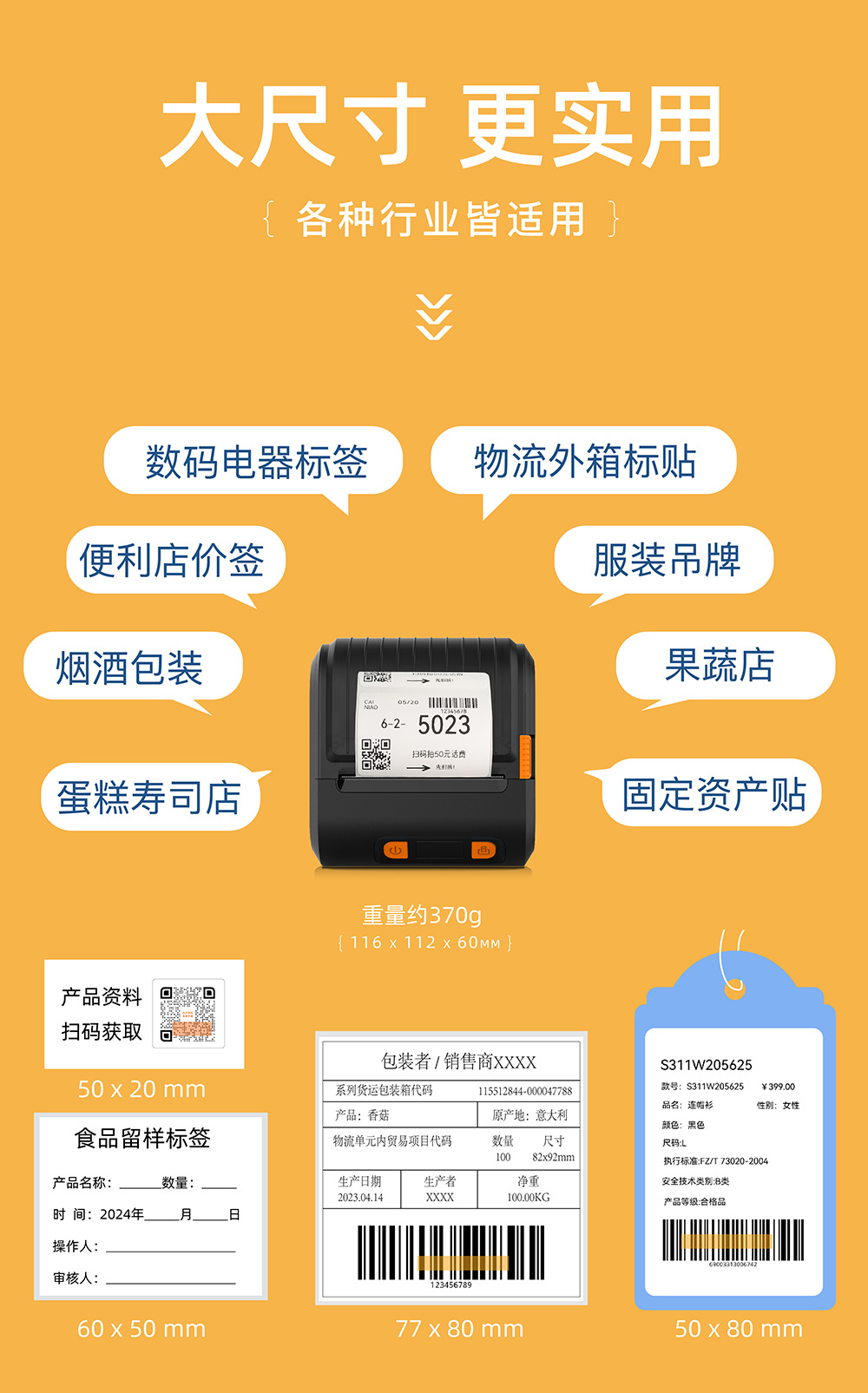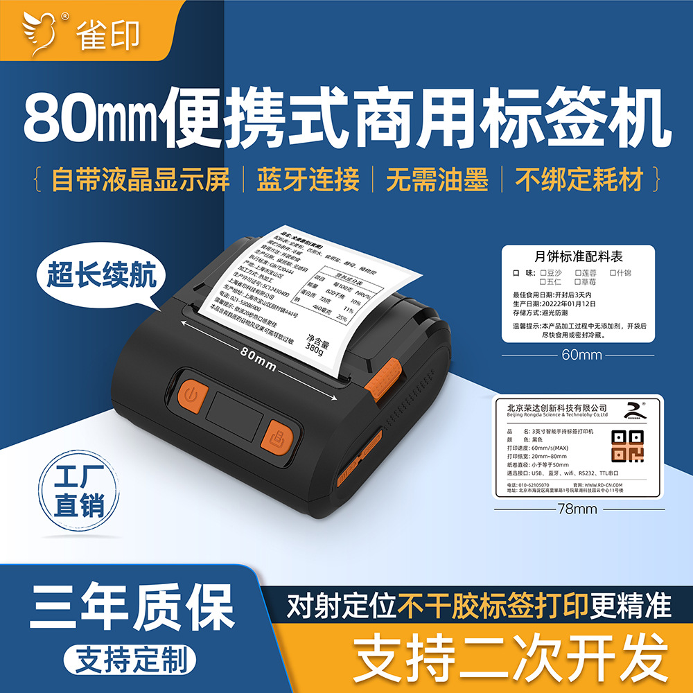 V30 휴대용 상업 라벨링 기계 인쇄 80mm 폭 수집 코드 2 차원 코드 성분 목록 자산 식별 태그