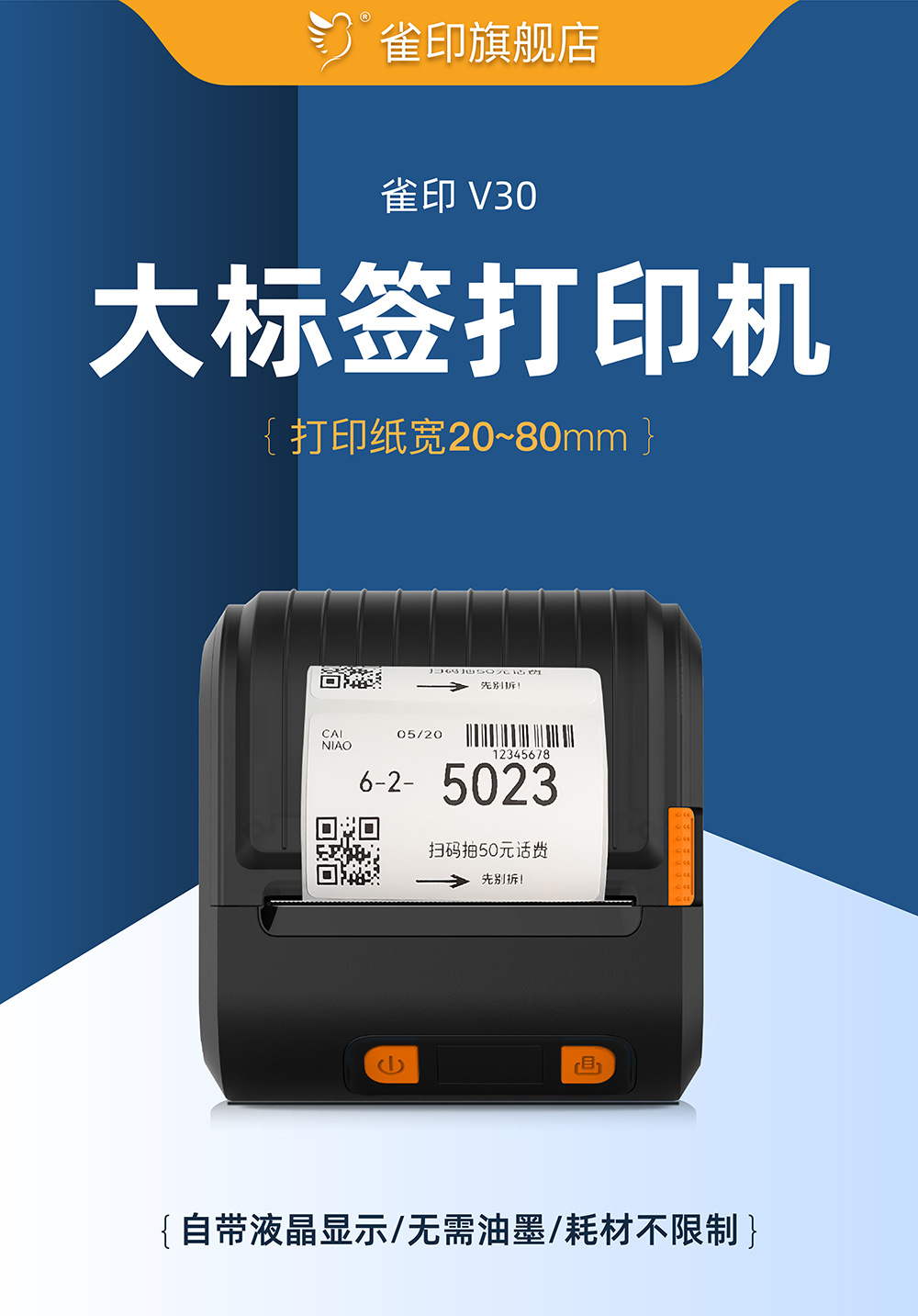 V30 휴대용 상업 라벨링 기계 인쇄 80mm 폭 수집 코드 2 차원 코드 성분 목록 자산 식별 태그스토어 가기