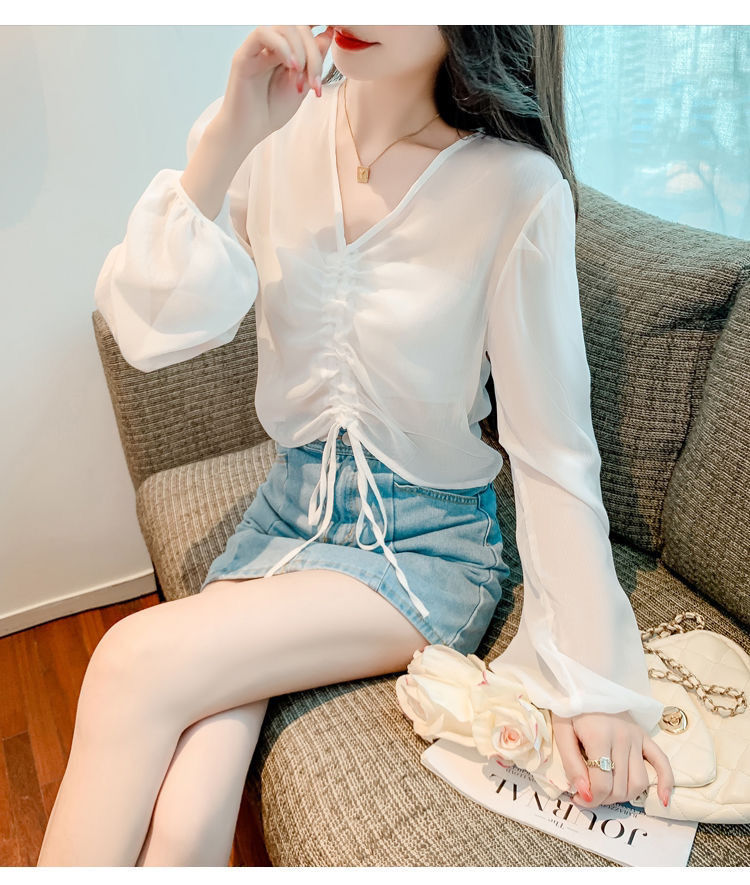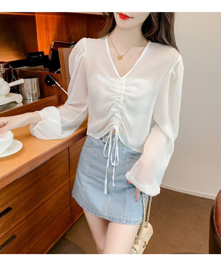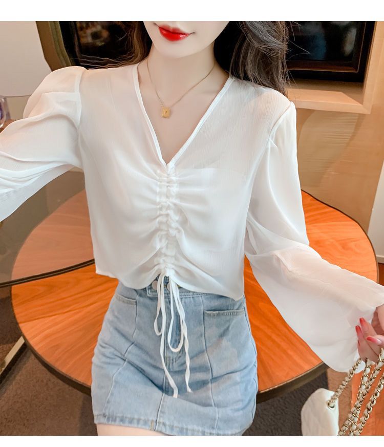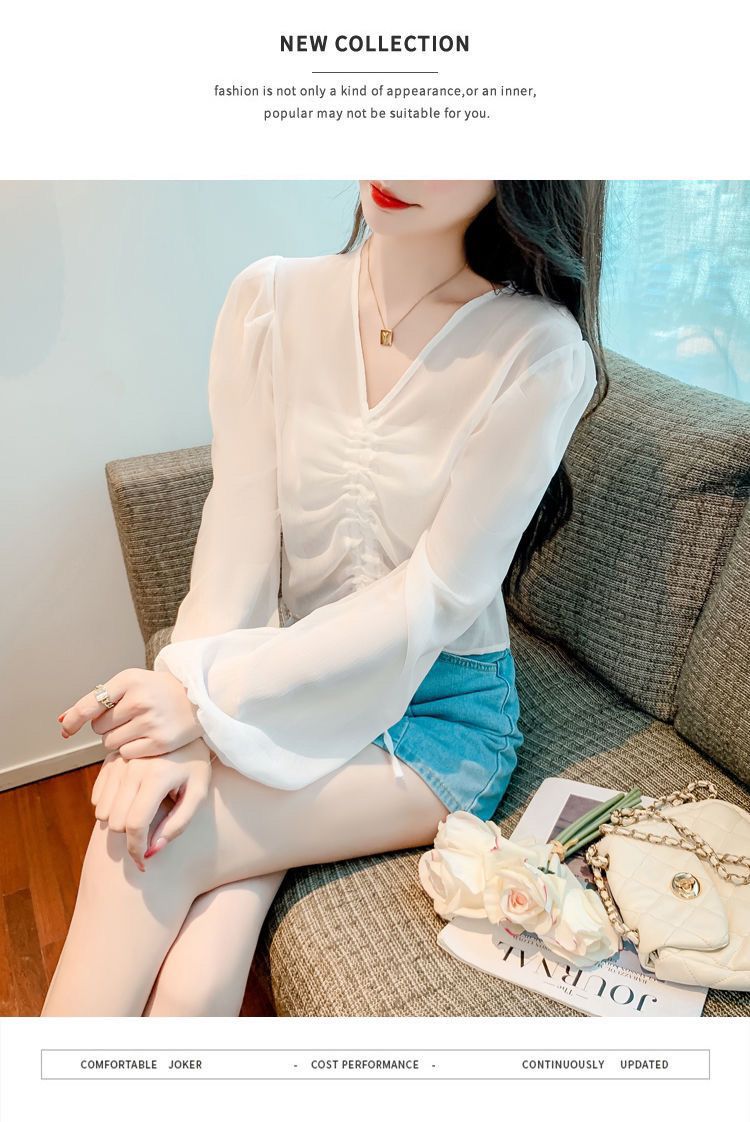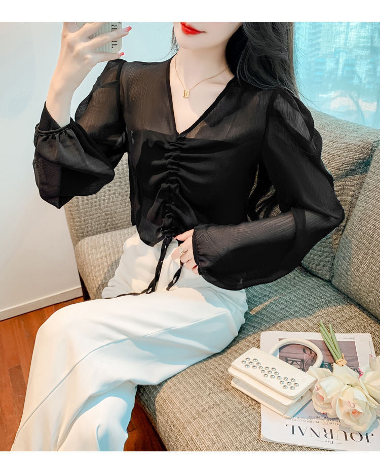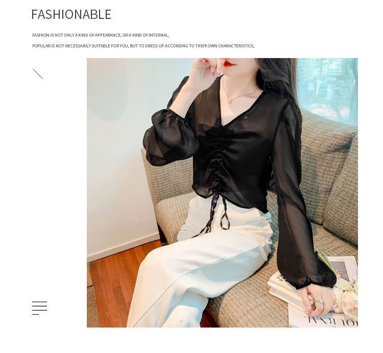 여름 얇은 뜨거운 소녀 최고 달콤한 기질 작은 셔츠 2024 새로운 프랑스 퍼프 소매 상단 짧은 태양 보호 의류스토어 가기