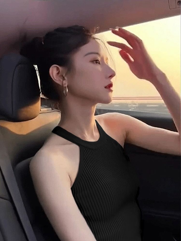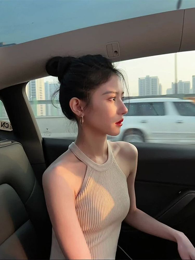 봄과 가을을위한 여성용 프랑스 스타일 고삐 I 자형 니트 캐미솔