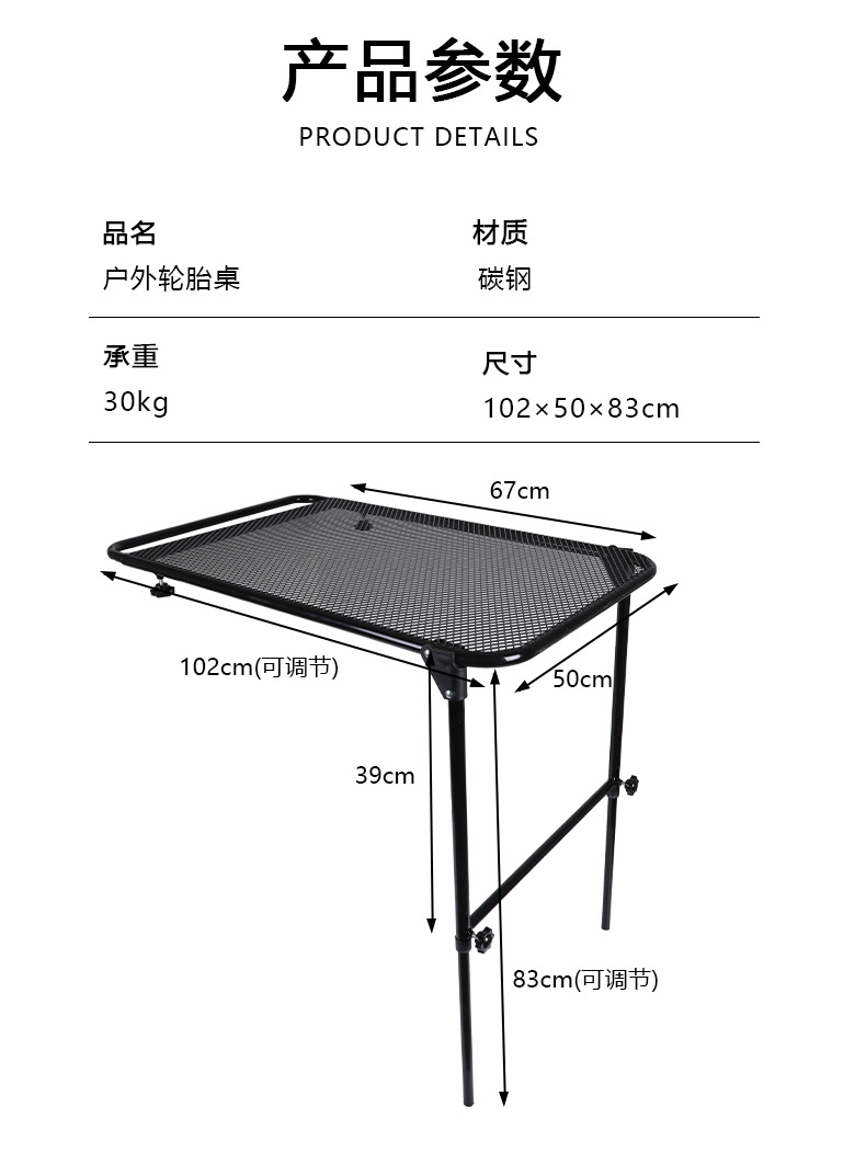 야외 캠핑 테이블 휴대용 타이어 접이식 리프팅 랙 타이어 식탁