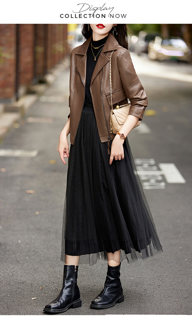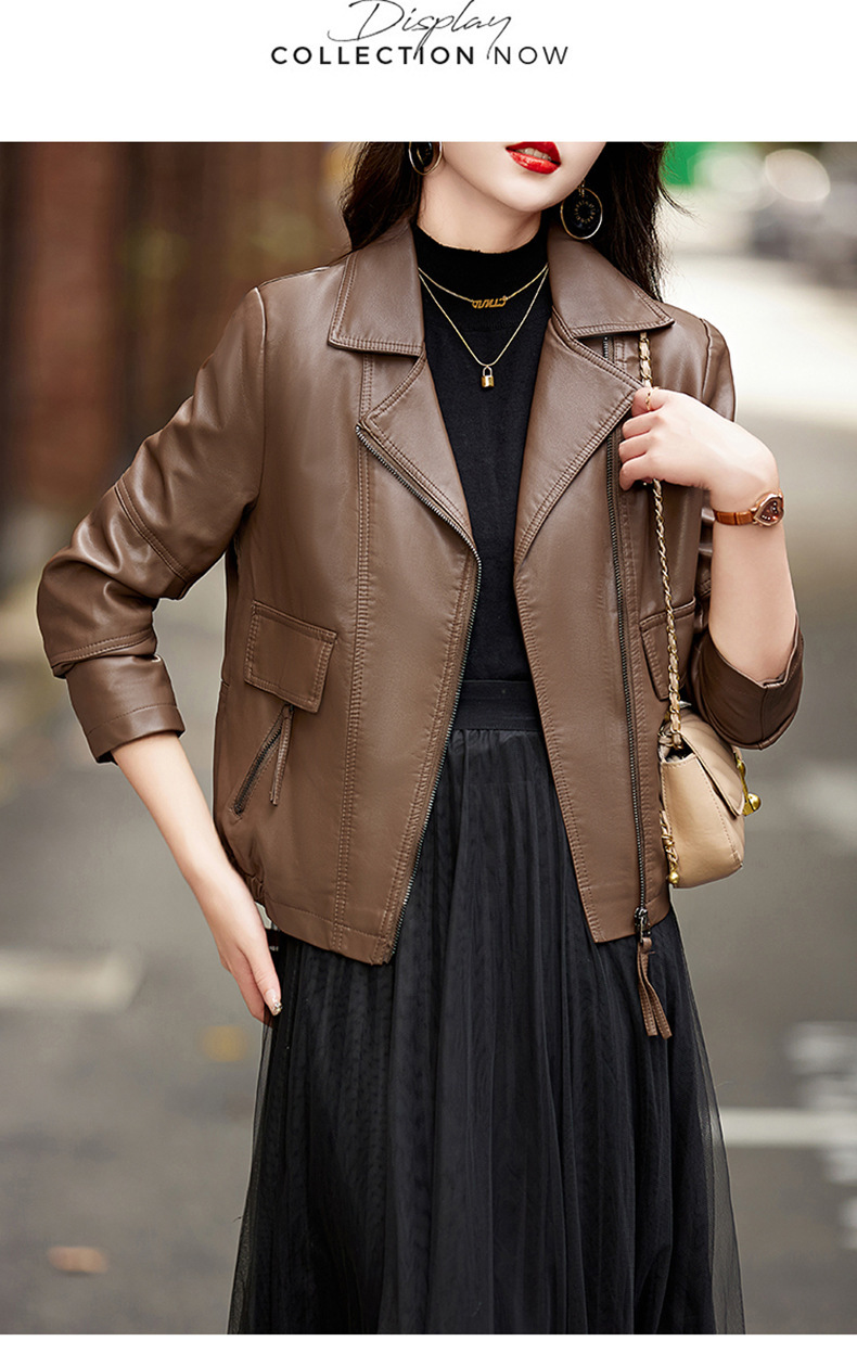 가죽 코트 여성 짧은 봄, 가을 2022 새로운 패션 캐주얼 모든 일치하는 폭발 스타일 옷깃 자켓 탑스토어 가기