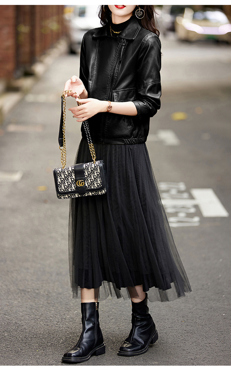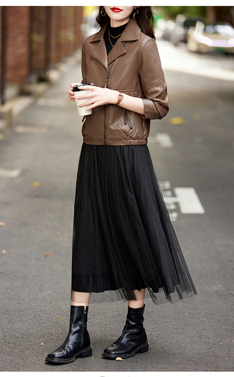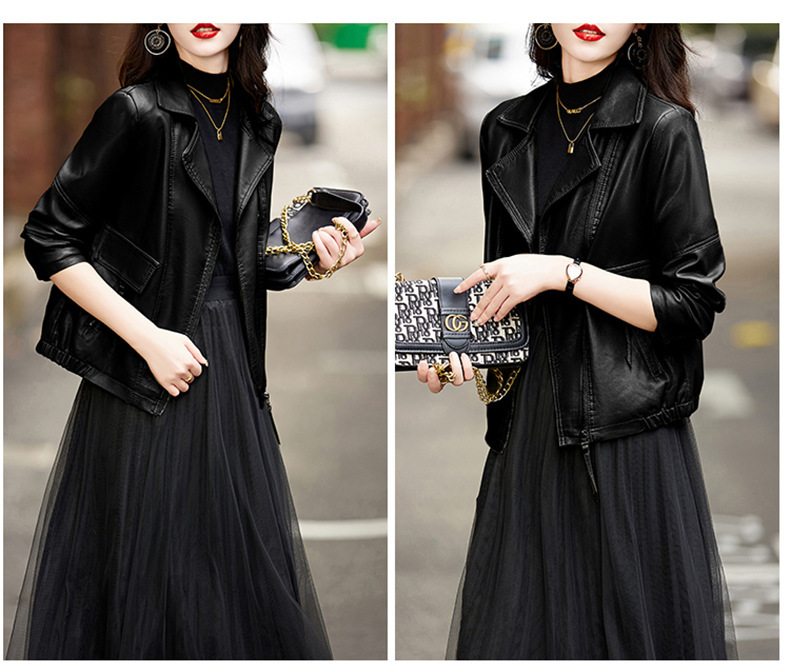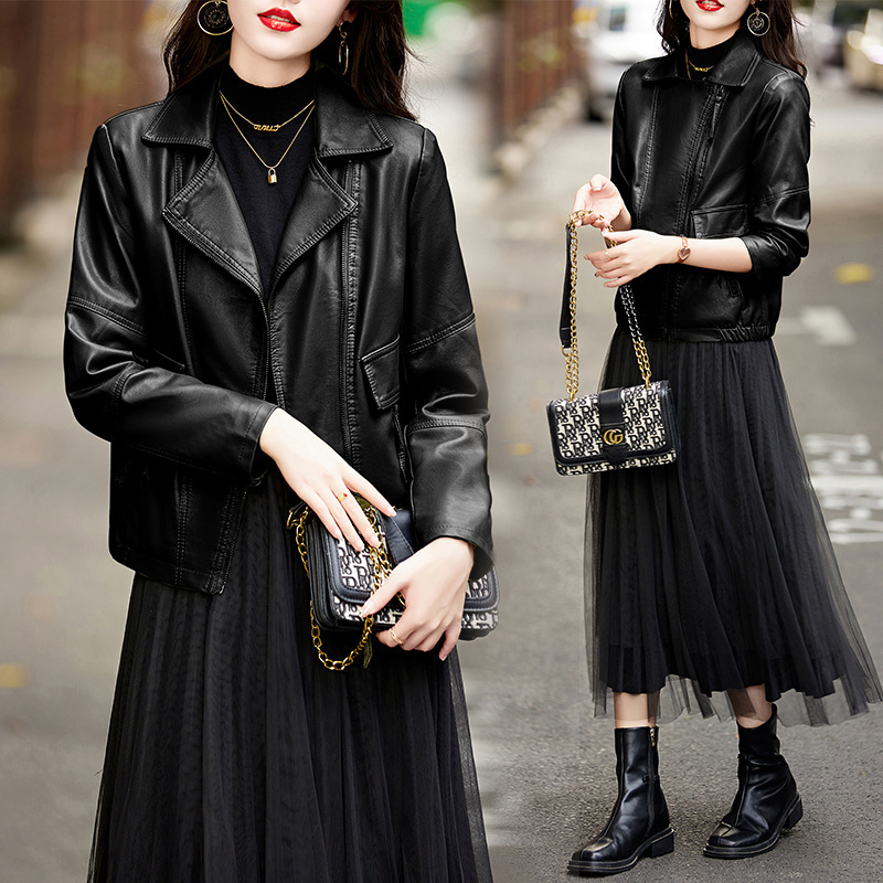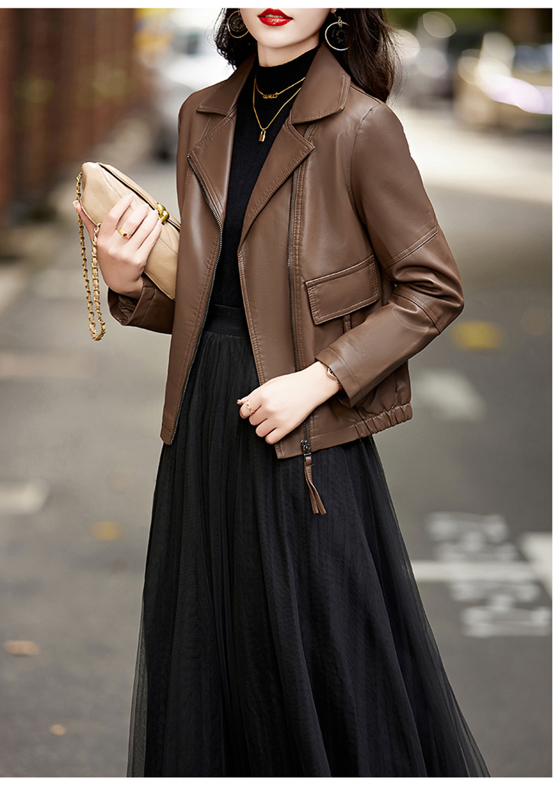 가죽 코트 여성 짧은 봄, 가을 2022 새로운 패션 캐주얼 모든 일치하는 폭발 스타일 옷깃 자켓 탑