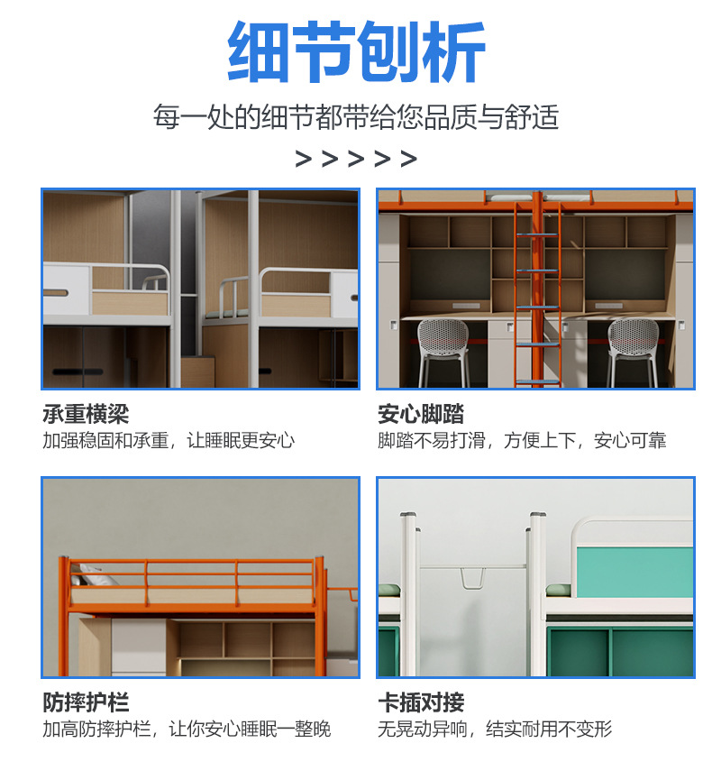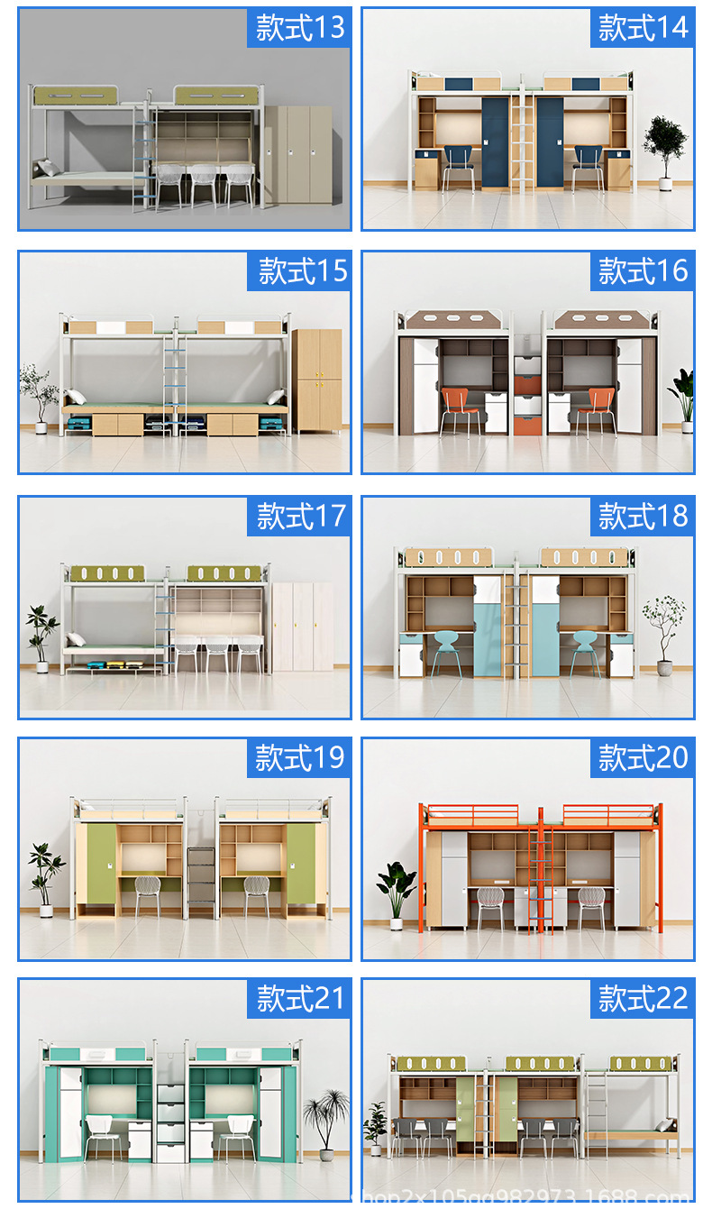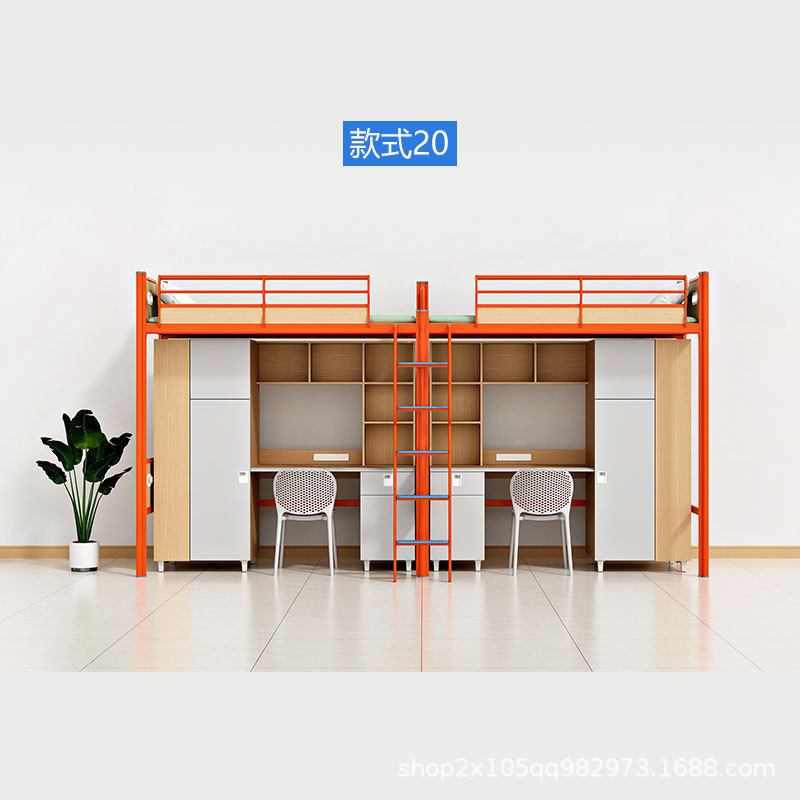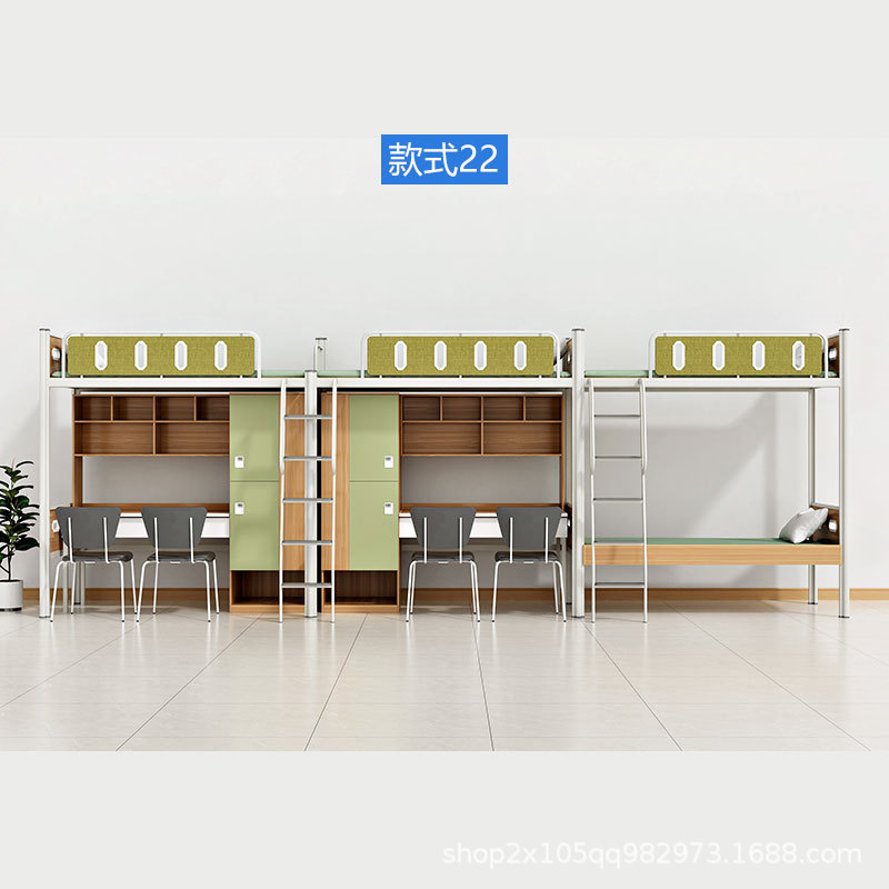 아파트 침대 현대 이층 학교 기숙사 침대 낮은 테이블 직원 철 침대 다인용 강철 금속 상하 침대