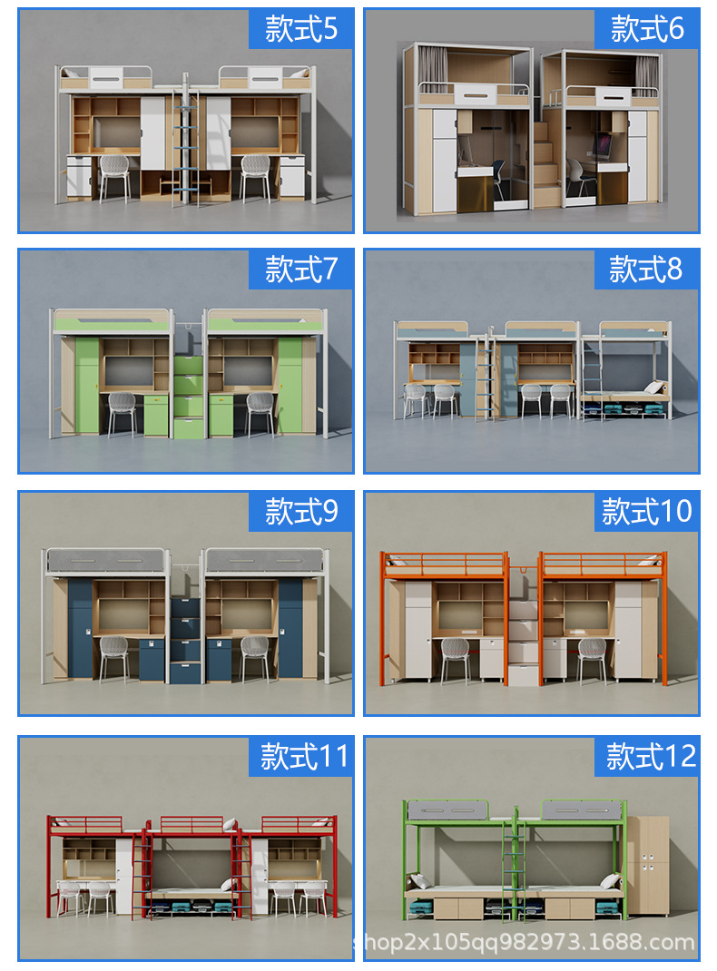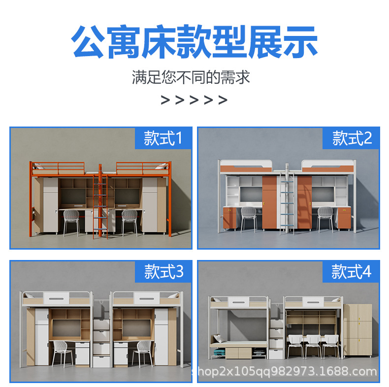 아파트 침대 현대 이층 학교 기숙사 침대 낮은 테이블 직원 철 침대 다인용 강철 금속 상하 침대스토어 가기