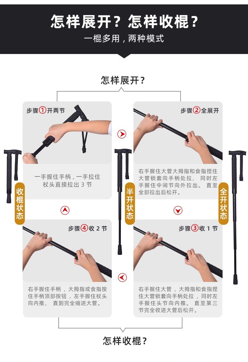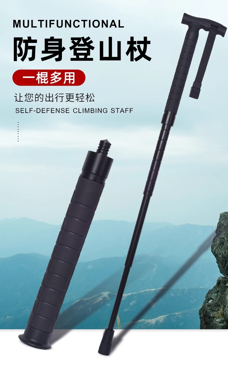 야외 자기 방어 트레킹 폴 기계 스윙 스틱 야외 접이식 다기능 텔레스코픽 워킹 스틱 셀프 방어 개 스틱스토어 가기