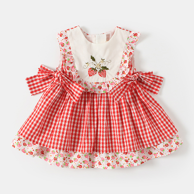 2025 여자 여름 민소매 공주 드레스 아기 딸기 격자 무늬 드레스 어린이 로리타 스타일 얇은 섹션 9127스토어 가기
