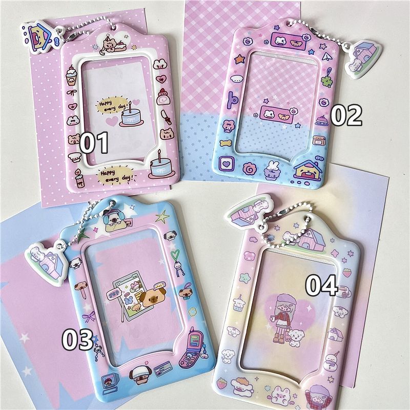 원래 전기 가장자리 코티지 귀여운 카드 홀더 3 인치 작은 카드 PVC 카드 홀더 보호 사진 디스플레이 장식 펜던트스토어 가기