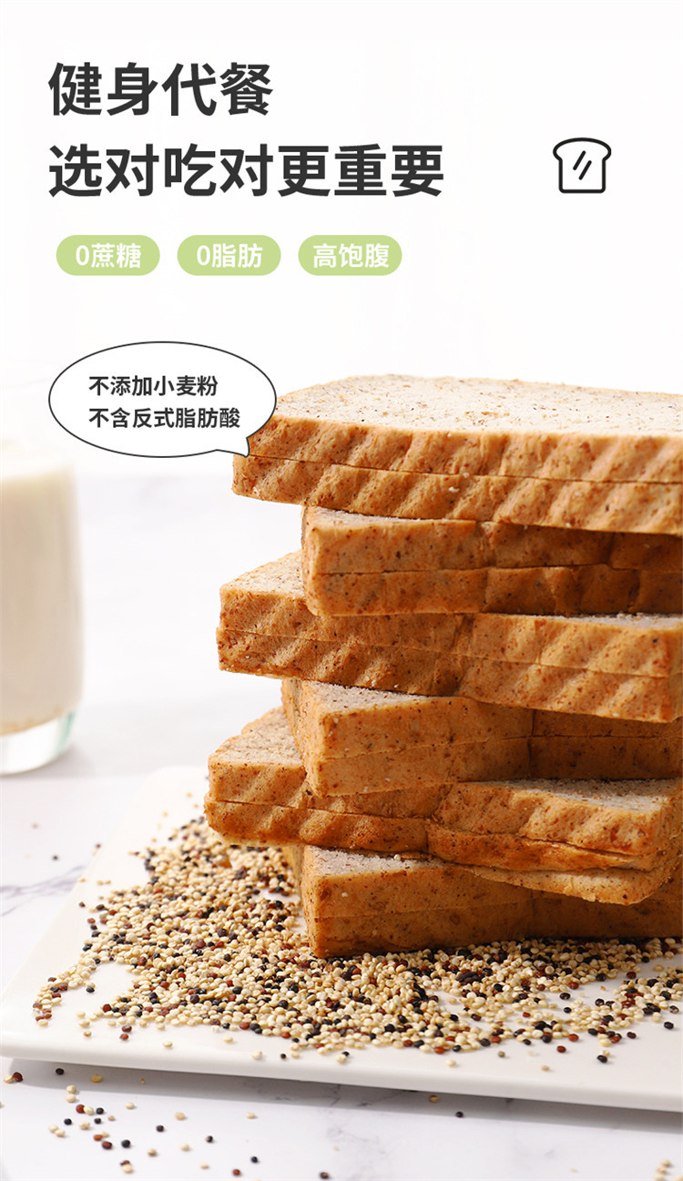 빵 Xinyu 통밀 퀴 노아 토스트 빵 아침 식사 피트니스 식사 교체 0 지방 전체 상자 500g