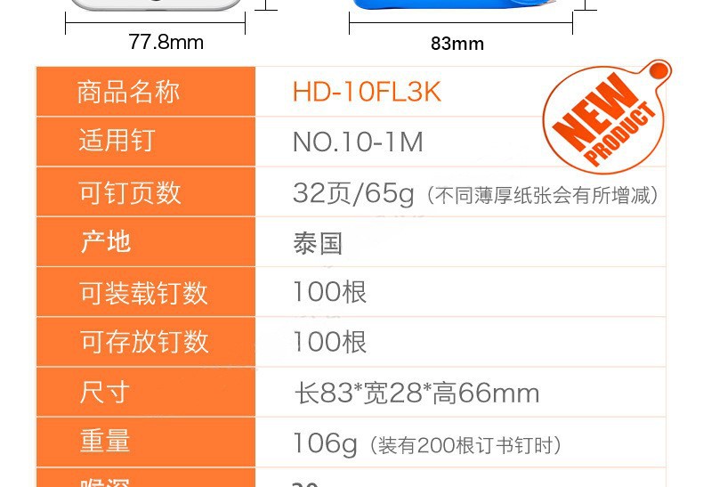 일본 MAX 스테이플러 노동 절약 플랫 풋 스테이플러 사무용품 스테이플러 학생 문구 HD-10FL3K스토어 가기
