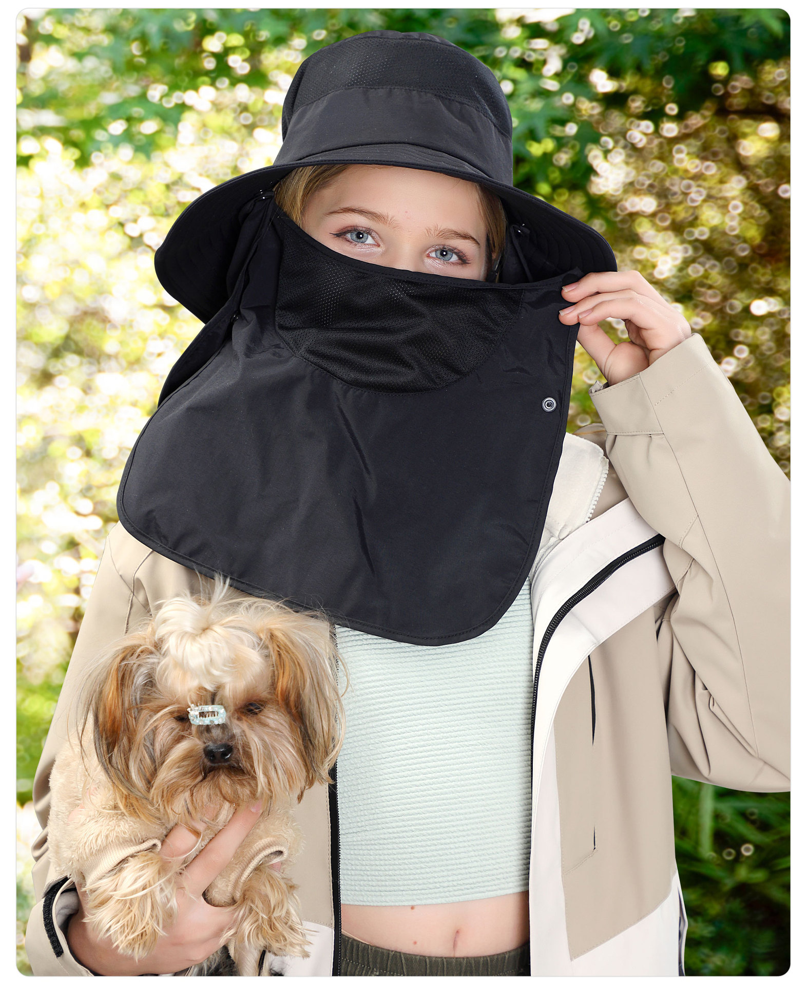 夏季批发360度蒙面防晒遮阳帽 防紫外线户外透气速干尼龙渔夫帽