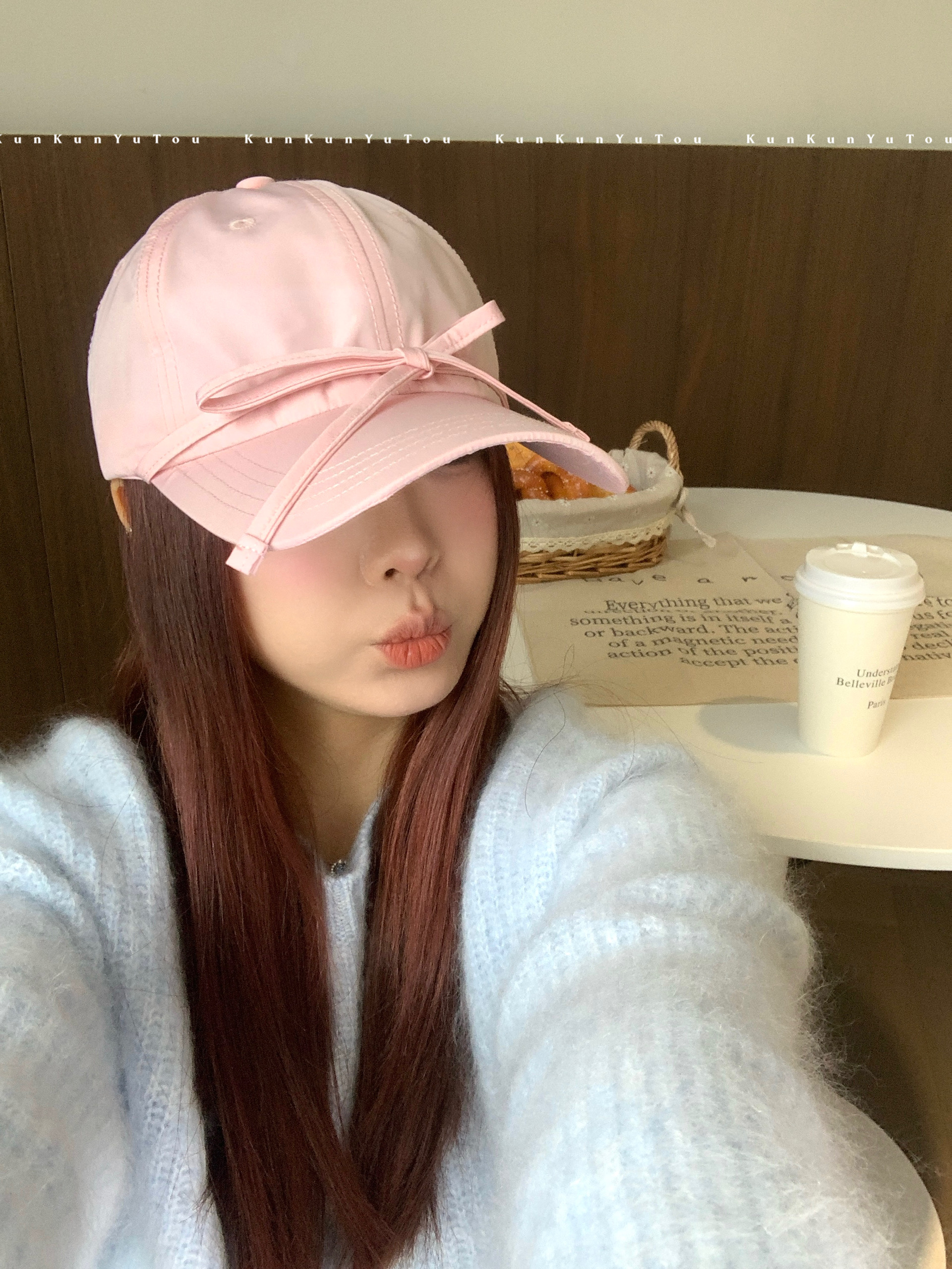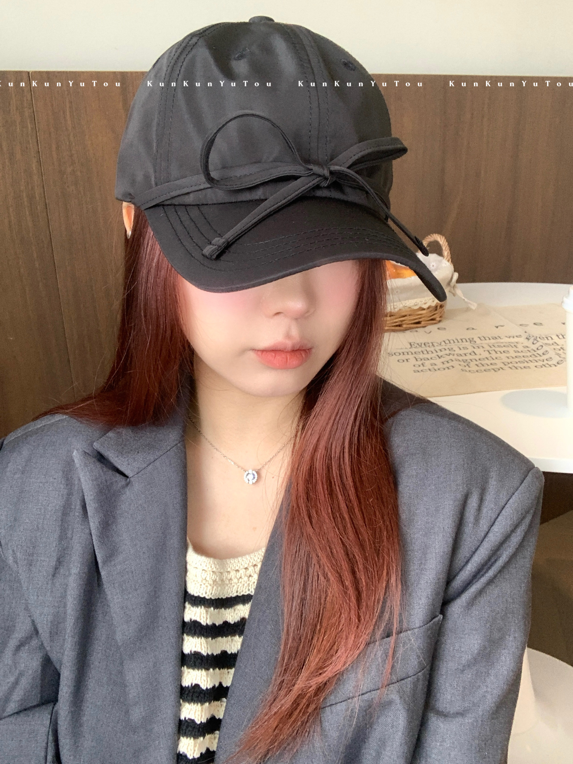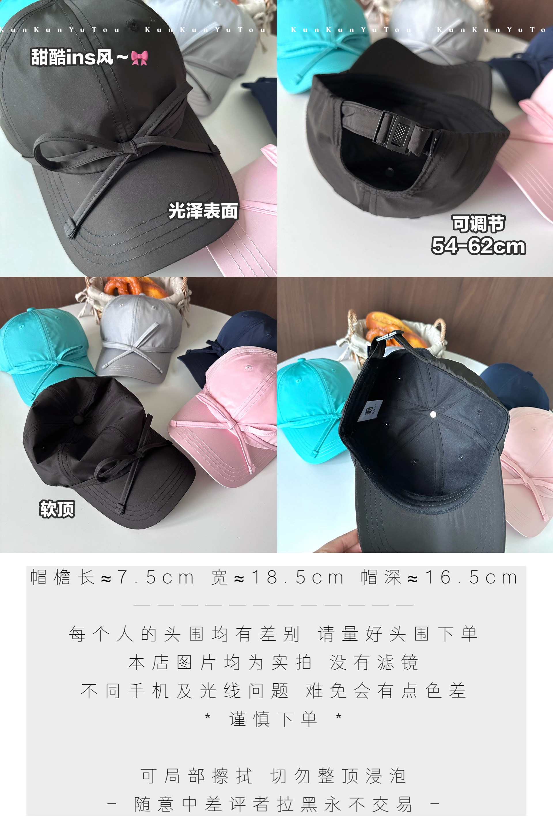 한국 틈새, 달콤한 소녀 발레 스타일 스트랩 활 소프트 탑 광택 야구 모자 올 매치 큰 머리 둘레 모자스토어 가기