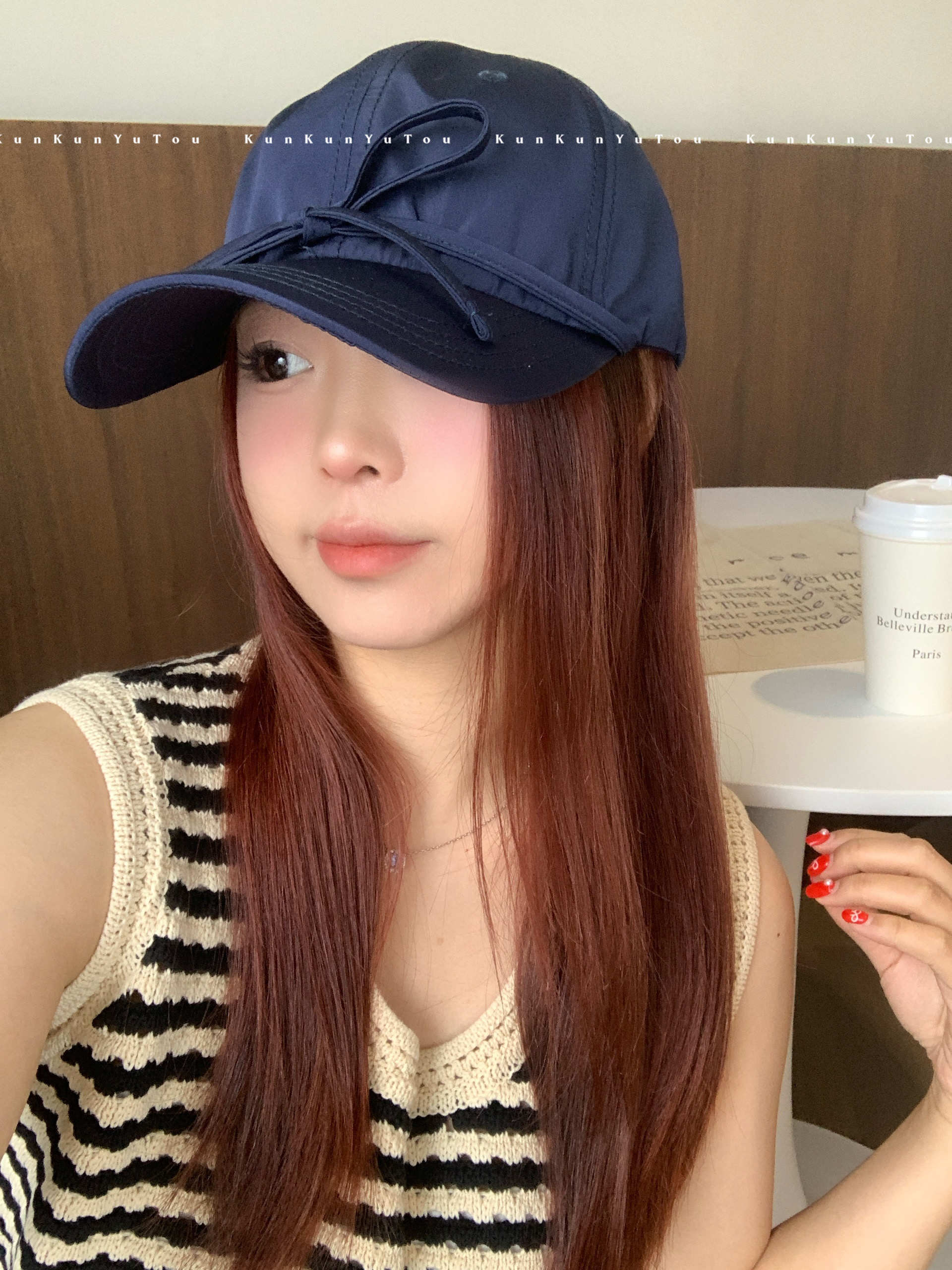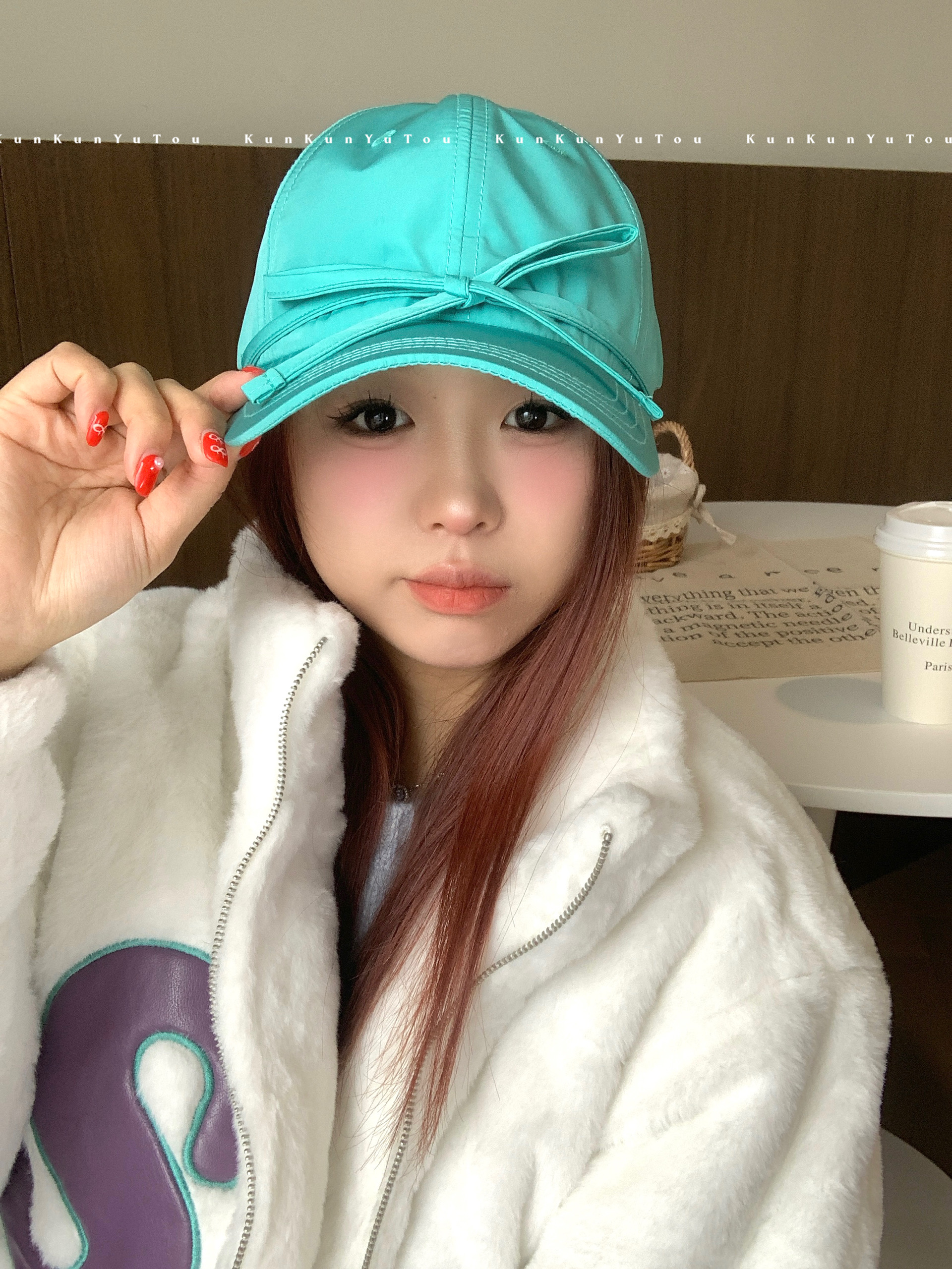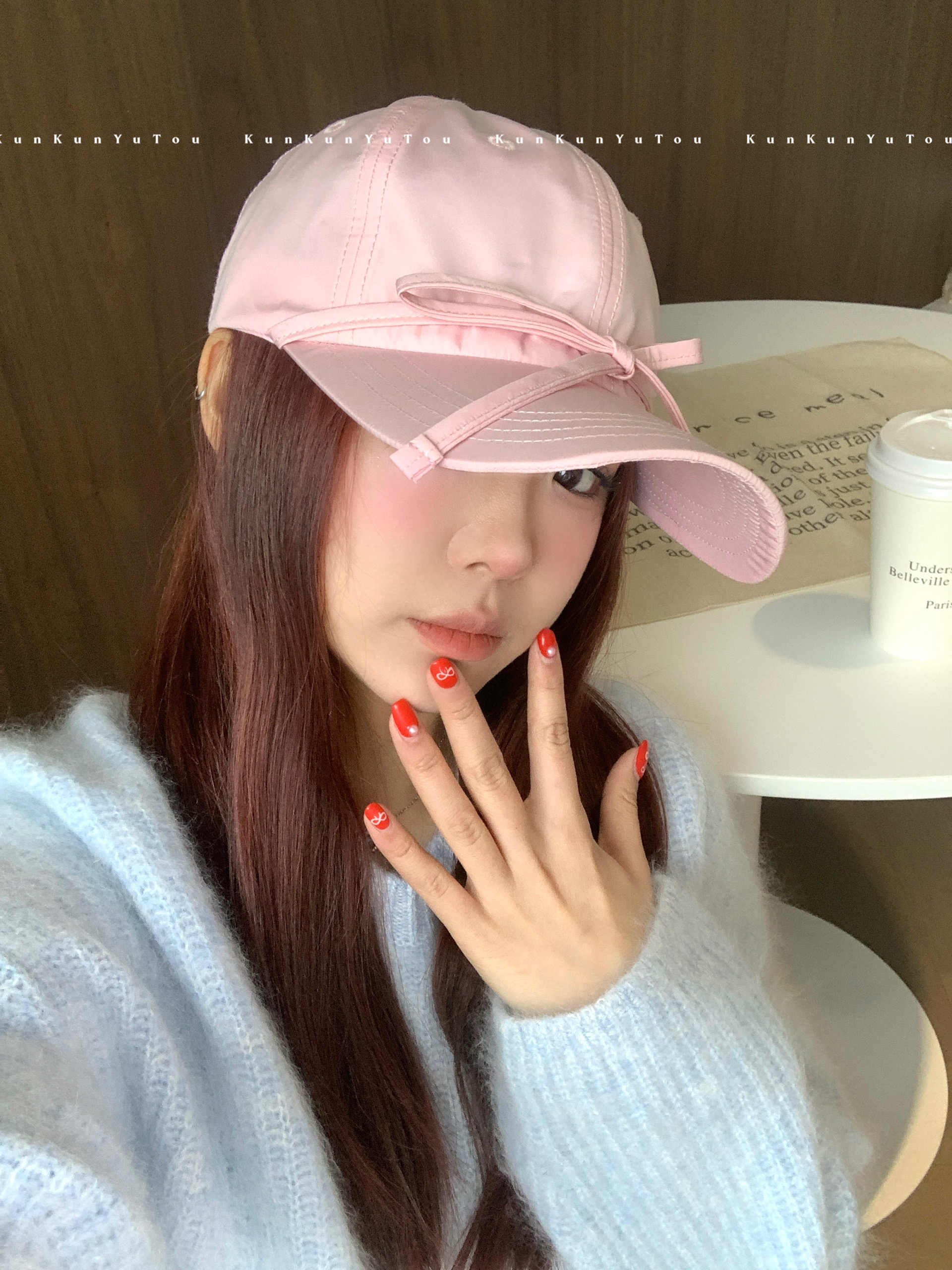 한국 틈새, 달콤한 소녀 발레 스타일 스트랩 활 소프트 탑 광택 야구 모자 올 매치 큰 머리 둘레 모자스토어 가기