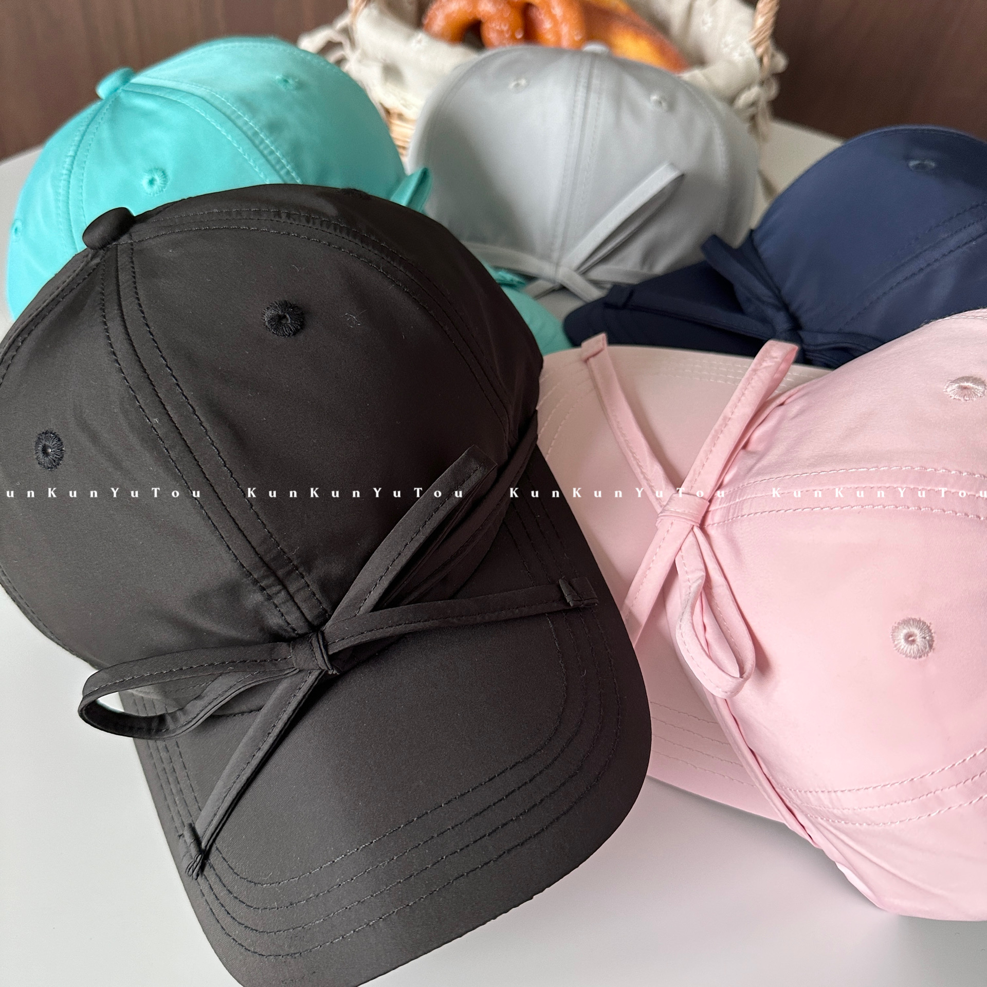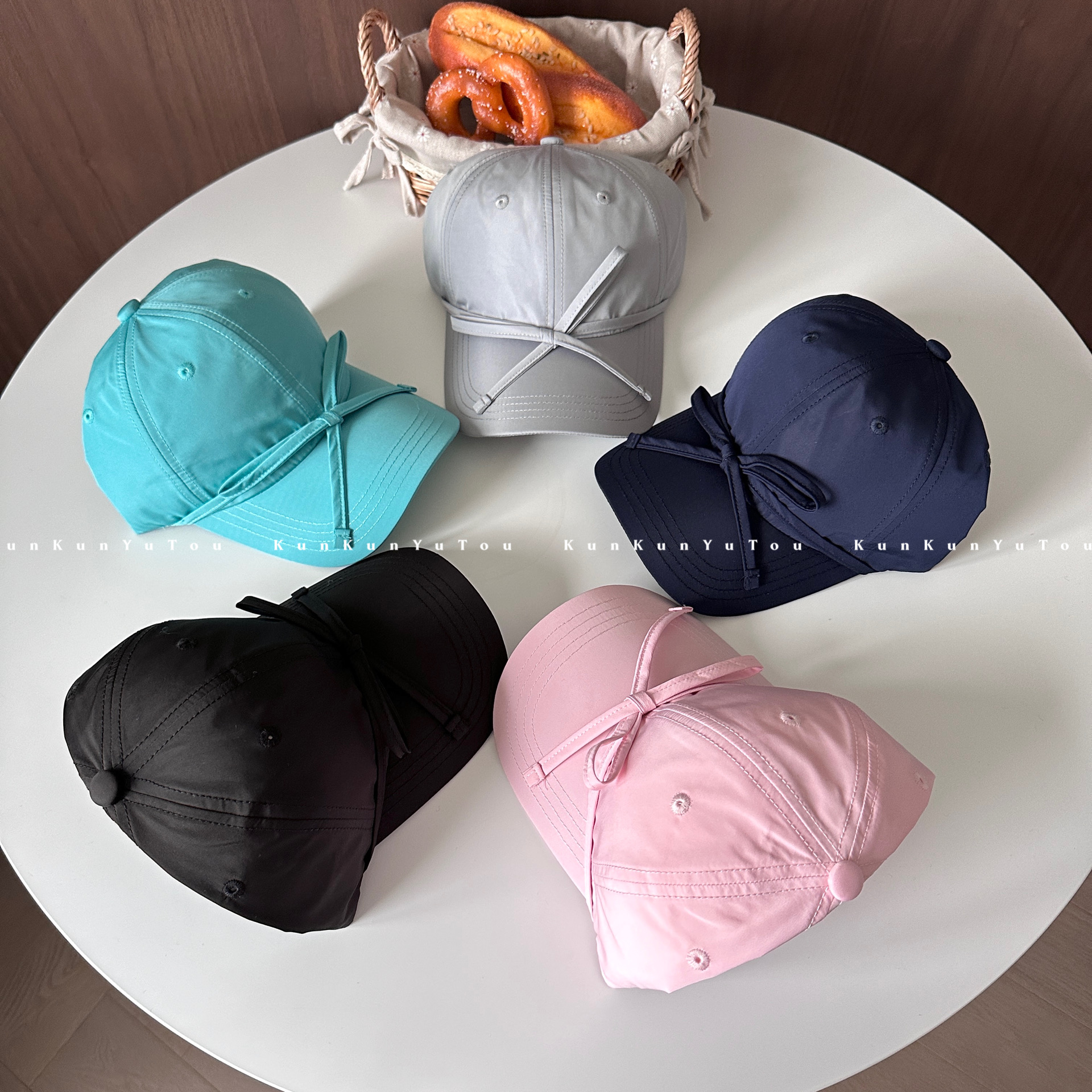 한국 틈새, 달콤한 소녀 발레 스타일 스트랩 활 소프트 탑 광택 야구 모자 올 매치 큰 머리 둘레 모자
